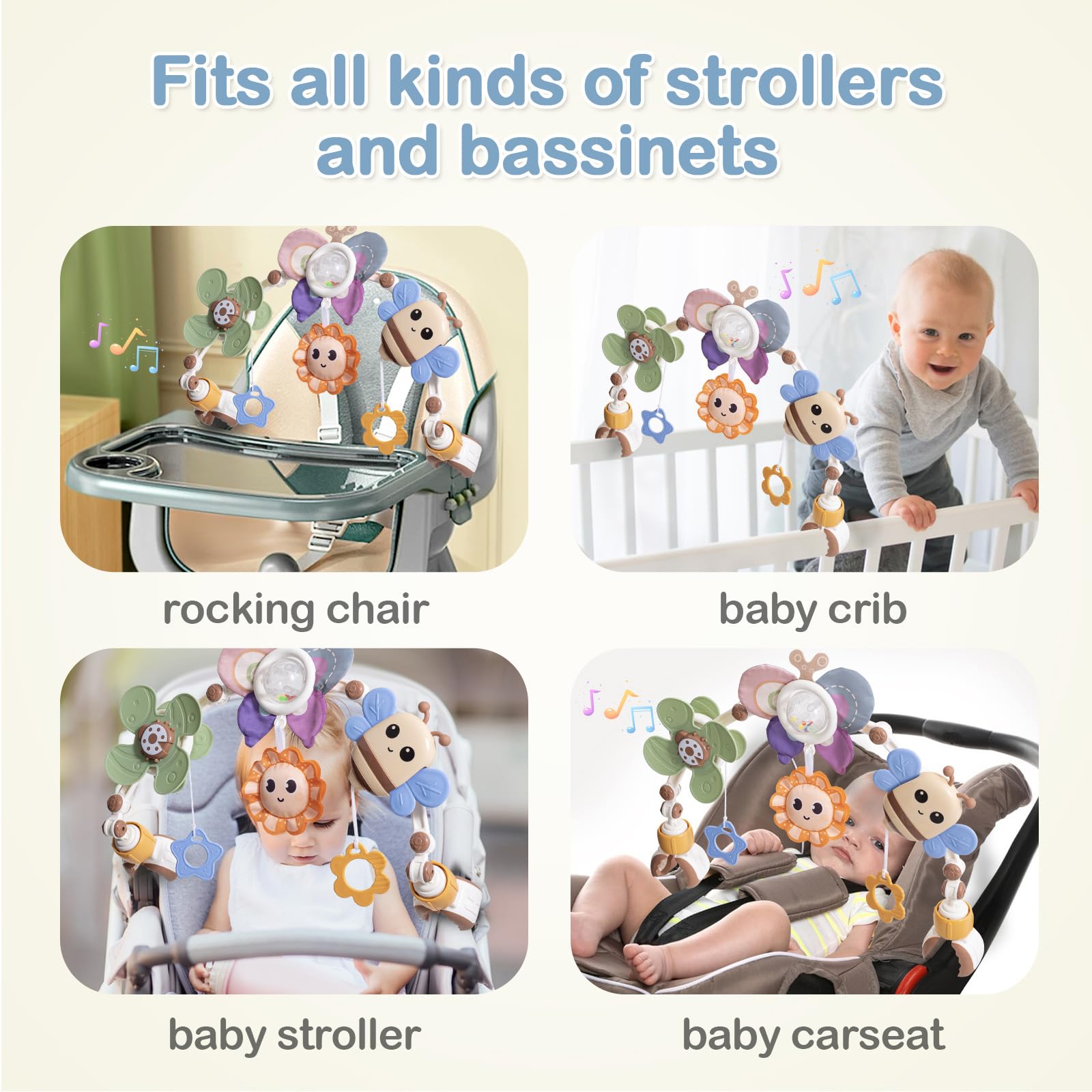 Adjustable Baby Stroller Arch Toys - Car Seat Toys Play Arch Crib Bassinet Toys Activity Arch with Fascinating Toys for Stimulating Babys Senses Developing Motor Skills Infants Toddlers Gifts