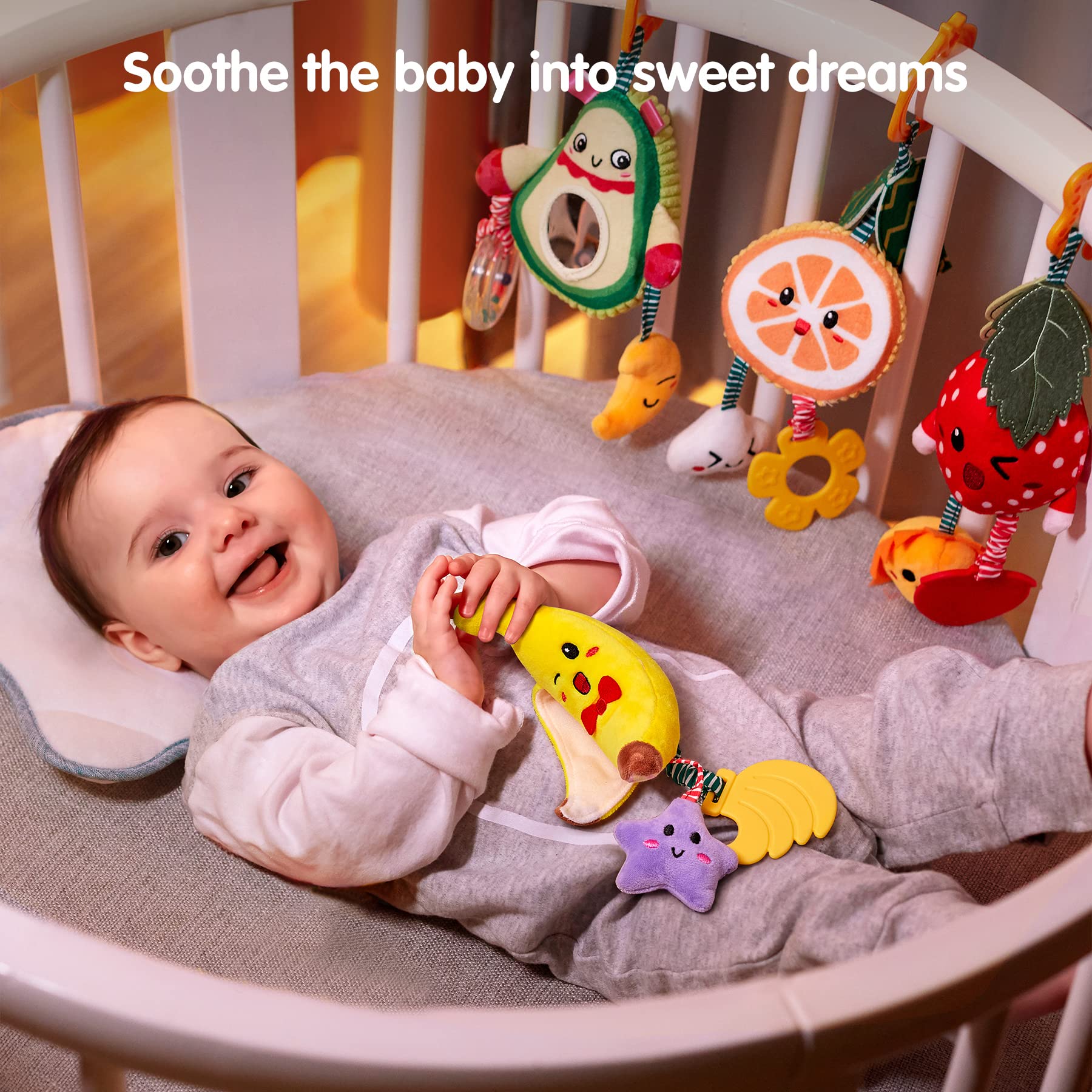 View compareTumama Baby Toys For 3 6 9 12 Months,Hanging Fruit Rattles Avocado,Banana,Orange And Strawberry,Stroller Mobile Toys,Plush Soft Rattles For Boys,Girls Christmas Gifts,4 Pack