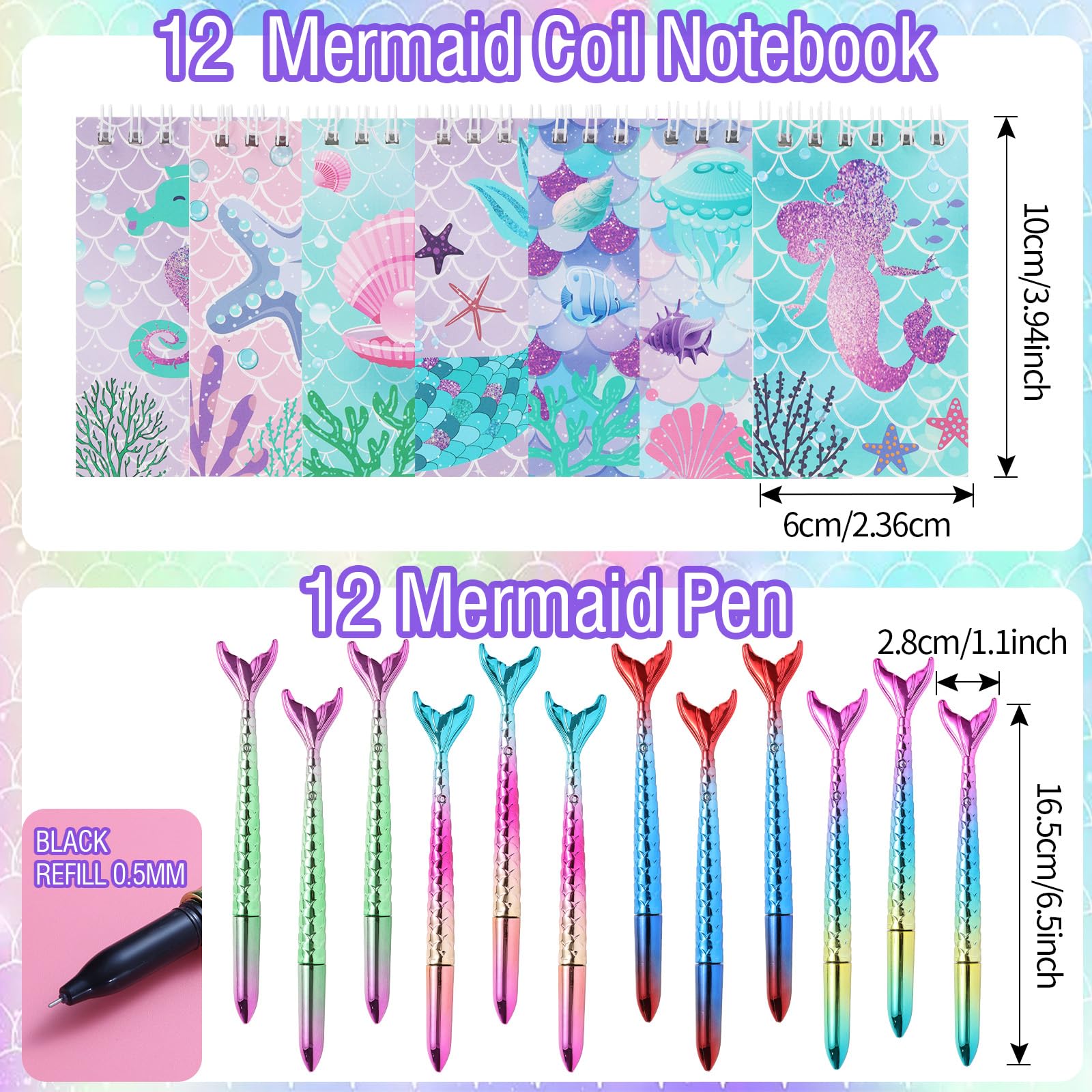 110 PCS Mermaid Party Favors for Girls Mermaid Birthday Decorations Party Supplies Include 12 Pen 12 Notepad 12 Shiny Metallic S