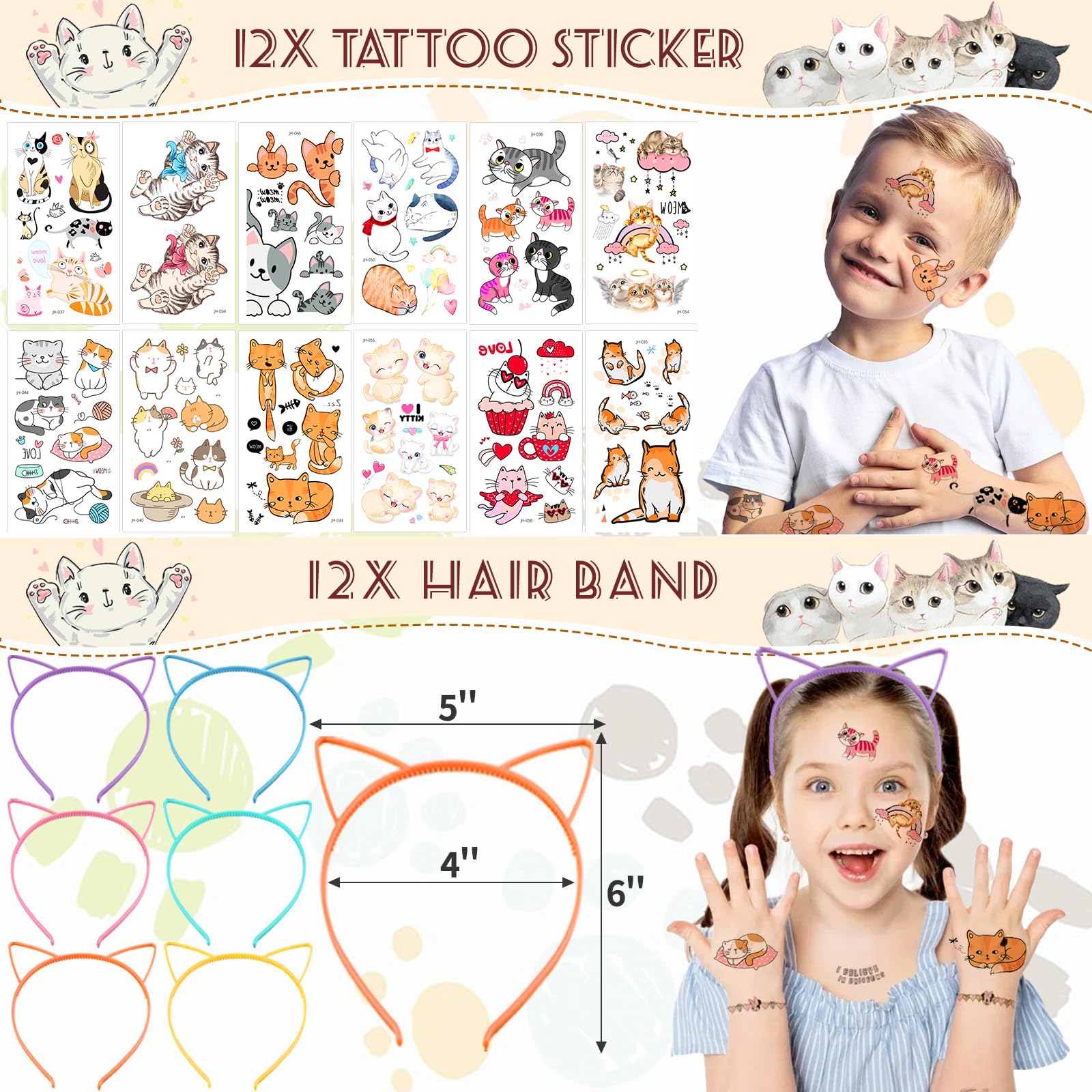 134Pcs Cat Party Favors Set for Kids Cat Themed Birthday Party Supplies With Cat Headband Spiral Notepads Pens Keychains Tattoo