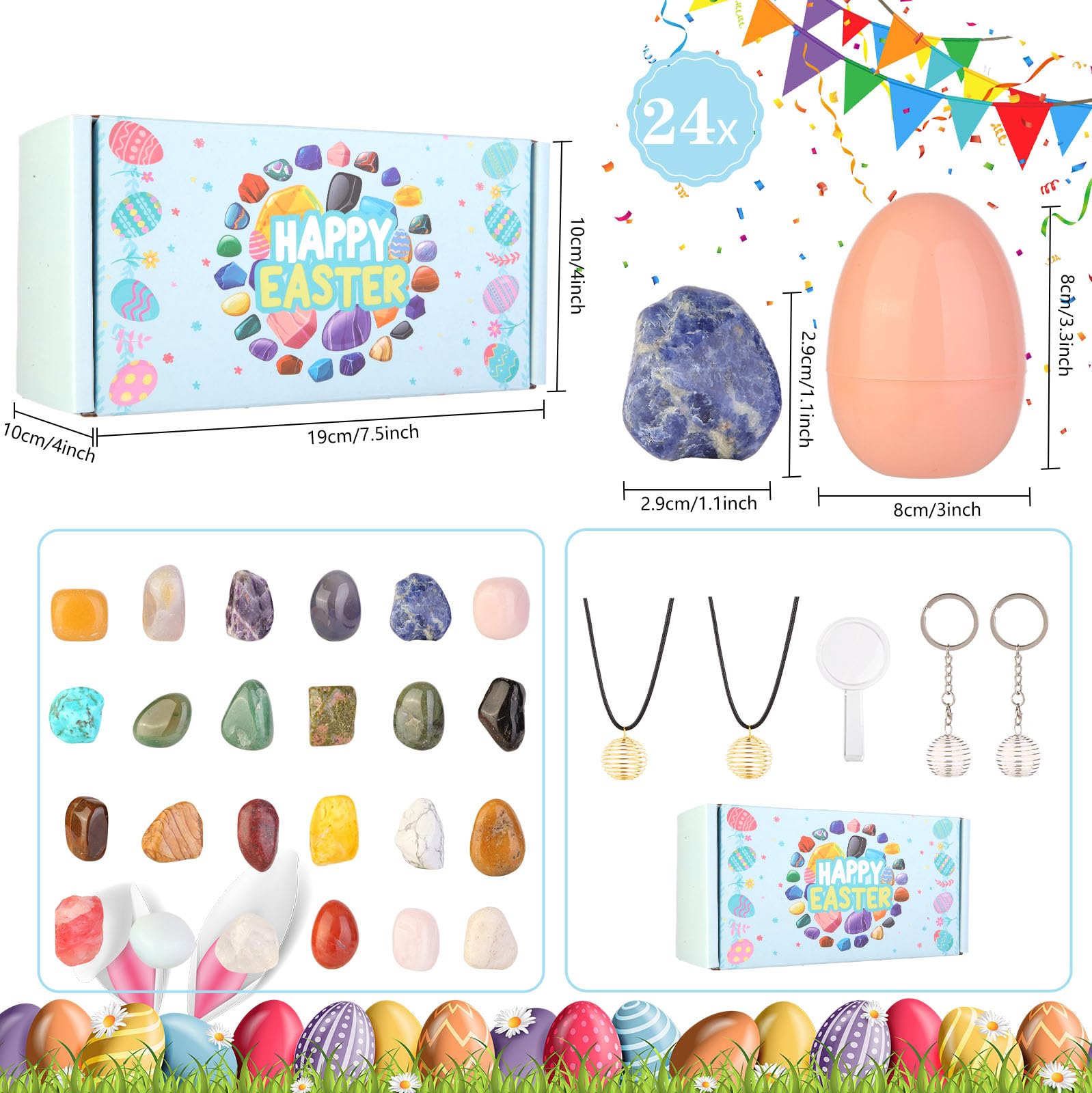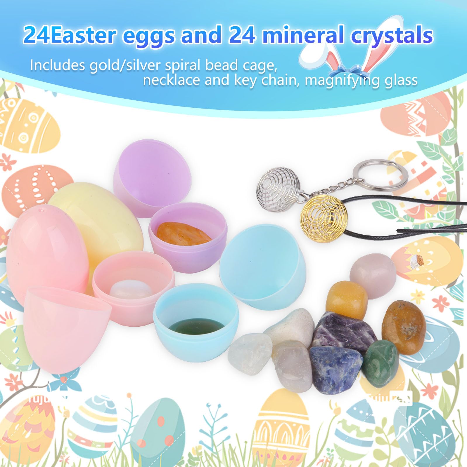24 Pack Filled Easter Eggs Fillers Set - Easter Basket Fillers for Teens, Not Prefilled Easter Eggs with Natural Crystals & Rock