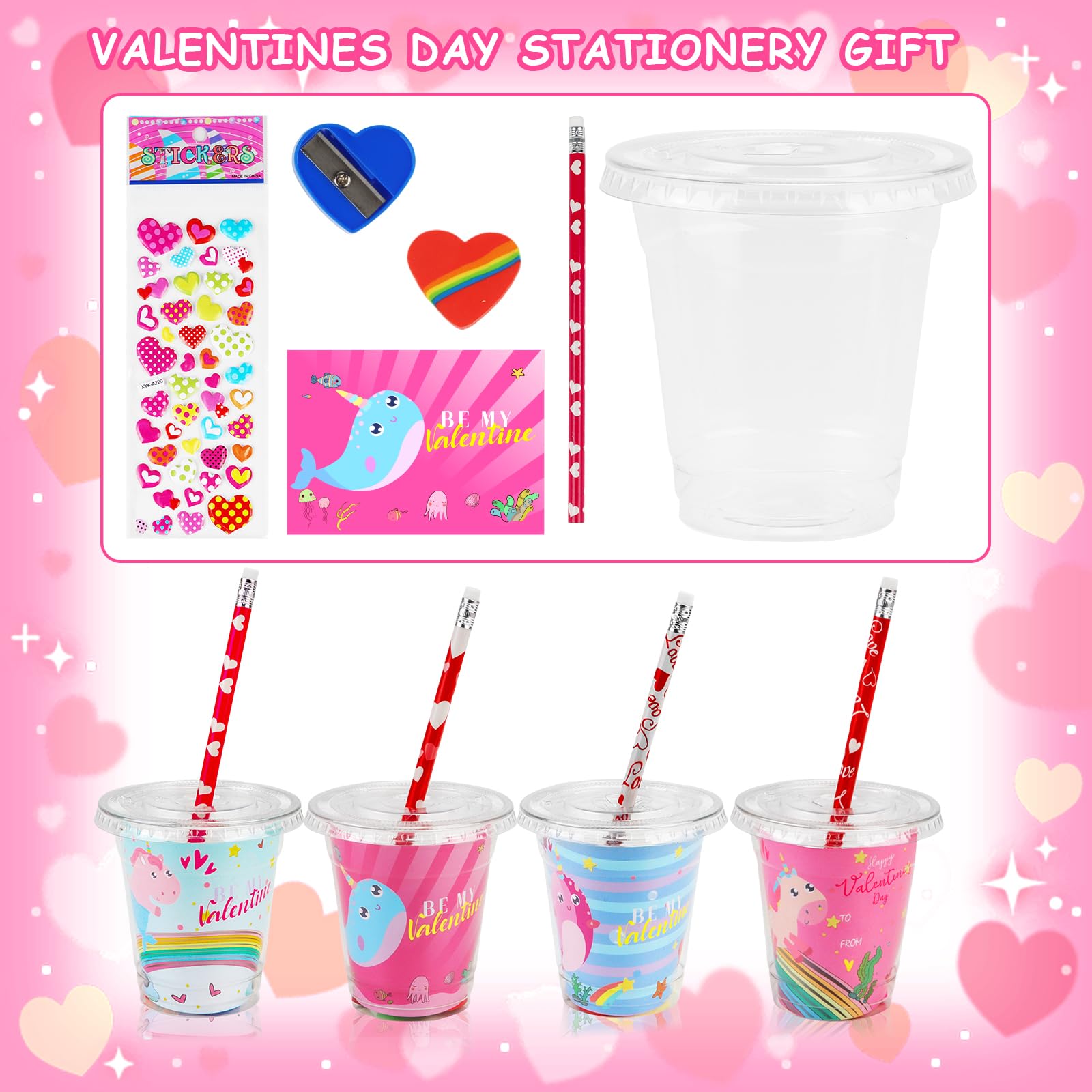 Advoxa Valentines Day Gifts For Kids - 28 Packs Valentines Stationery With Cards And Cups, Valentines Gift Exchange Classroom Pr