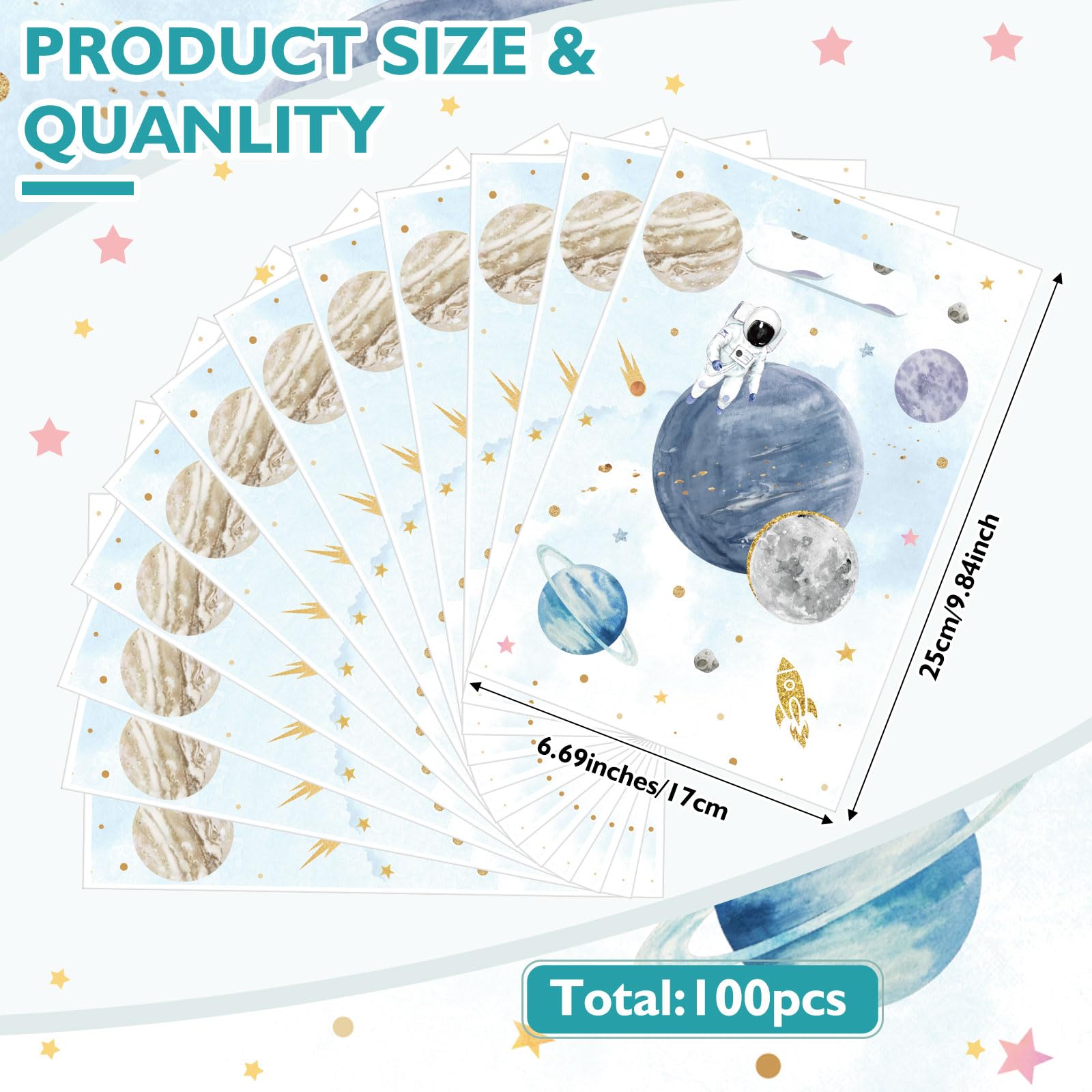 Blosssound 100 Pcs First Trip Around The Sun Space Party Treat Bags Plastic Outer Space Theme Gift Bags with Handles Solar Syste