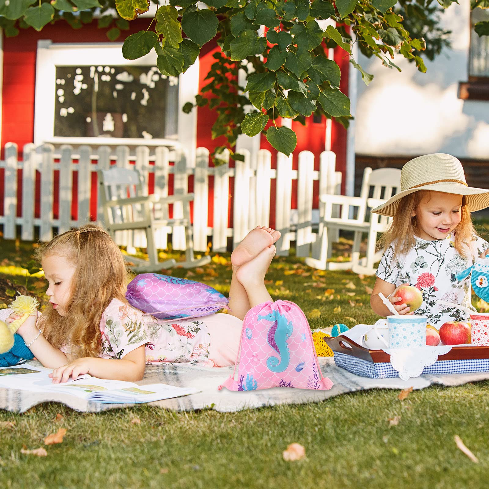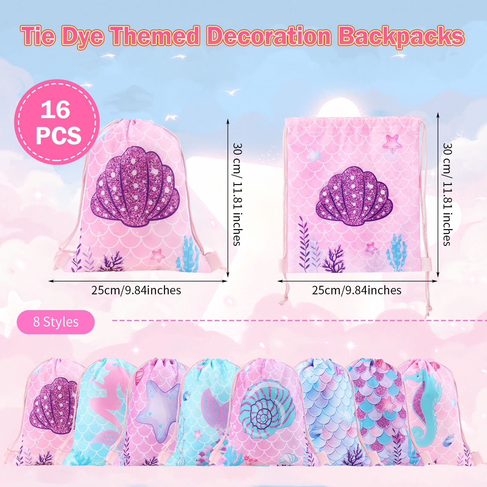 Clabby 16 Pcs Mermaid Party Favor Bags Mermaid Drawstring Bag Candy Gifts Sacks Backpack Bulk Birthday Fish Goodie Bags Under th