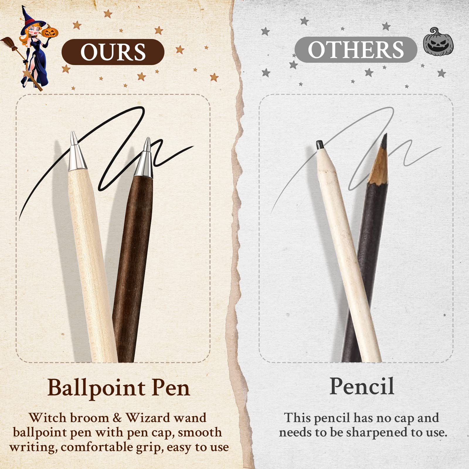 Features: Widely applicable: You can dress as a witch or wizard with the help of these wand ink pens and witch broom pens, which are a nice addition to witch costume accessories for kids and students. Theyre ideal for themed birthday parties, Halloween parties, role playing games, cosplay shows, stage performances and so on Nice gifts: These witch pens can also be applied as gifts for family members, friends, relatives, coworkers, neighbors, and other people you care about, so you can send them to show your love and concern, and to strengthen your relationships. Specifications: Material: wood Color: Broom ballpoint pen: brown Wand ballpoint pen: burlywood Size: about 20 cm/ 7.87 inches in length Package includes: 15 x Witch broom ballpoint pens 15 x Witch wand ballpoint pens Notes: Manual measurement, please allow slight errors on size. The color may exist a slight difference due to different screen displays.