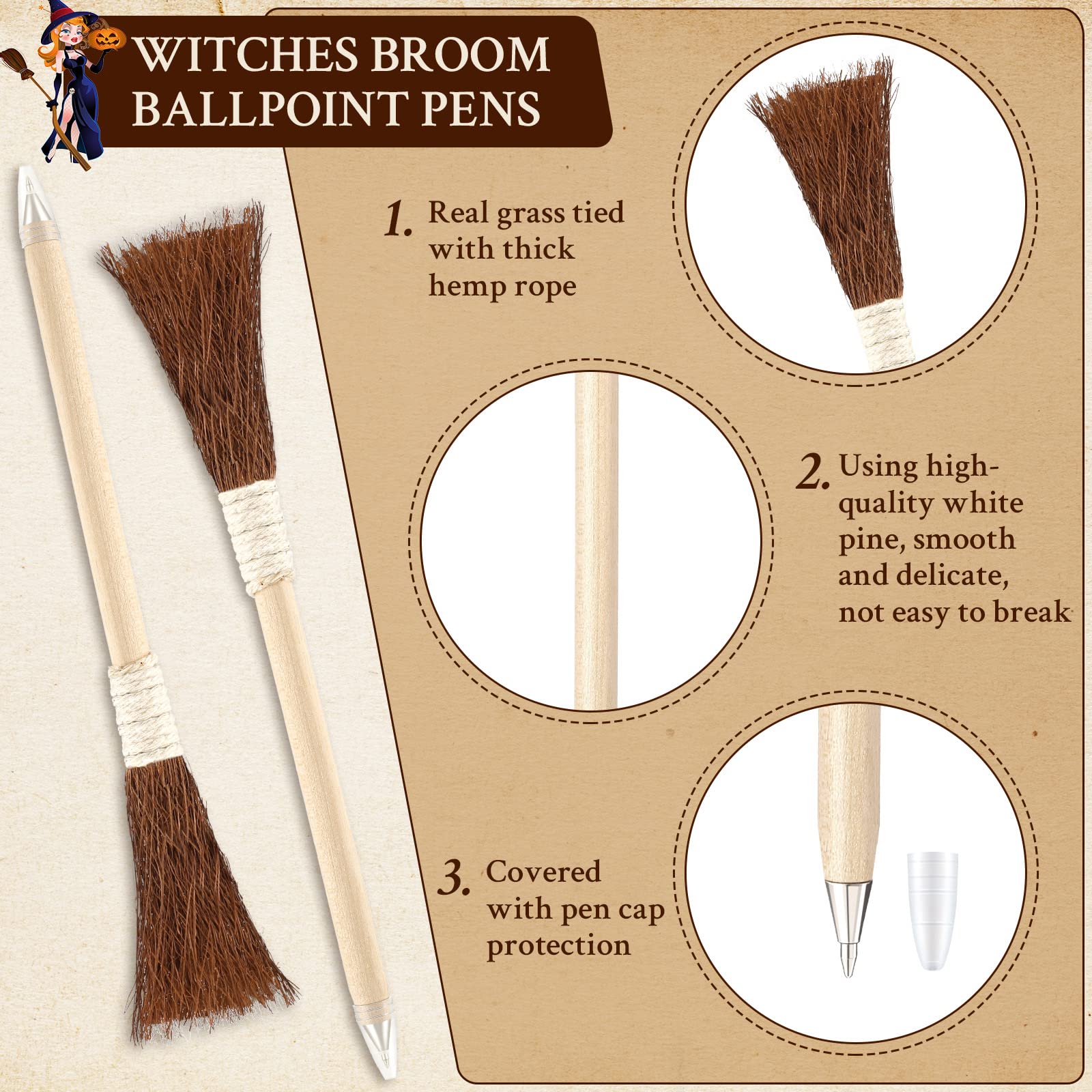 Fumete 30 Pieces Halloween Witch Broom Ballpoint Pen Bulk Halloween Party Favors Witch Wand Broomstick Ballpoint Pen with Pen Ca