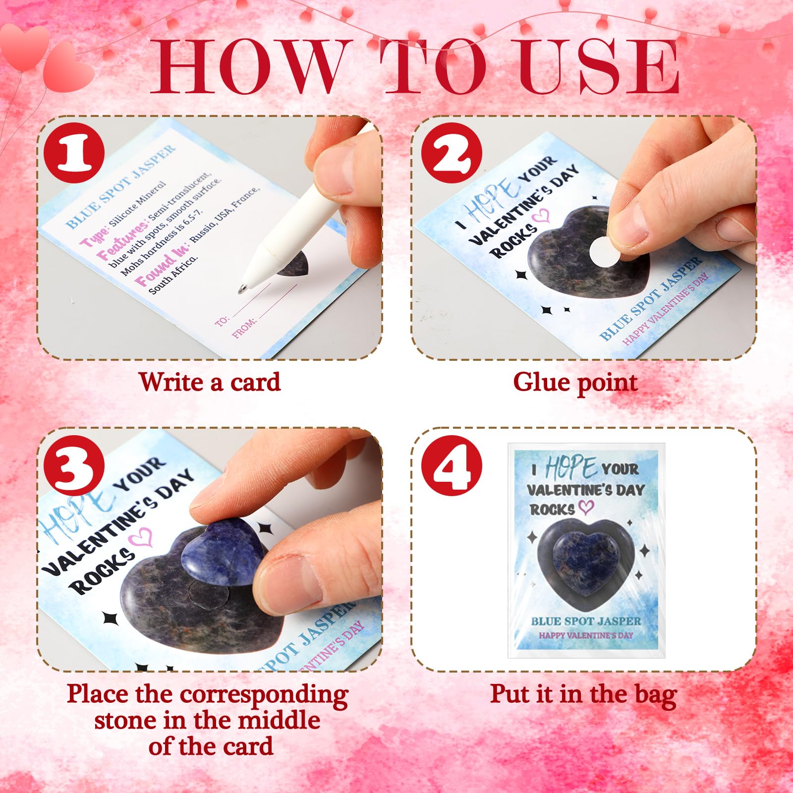 JellyArch 28 Pack Valentines Day Gifts Class Valentines Cards with Heart Crystals Gemstones Bulk Exchange Gift for Party Favors(