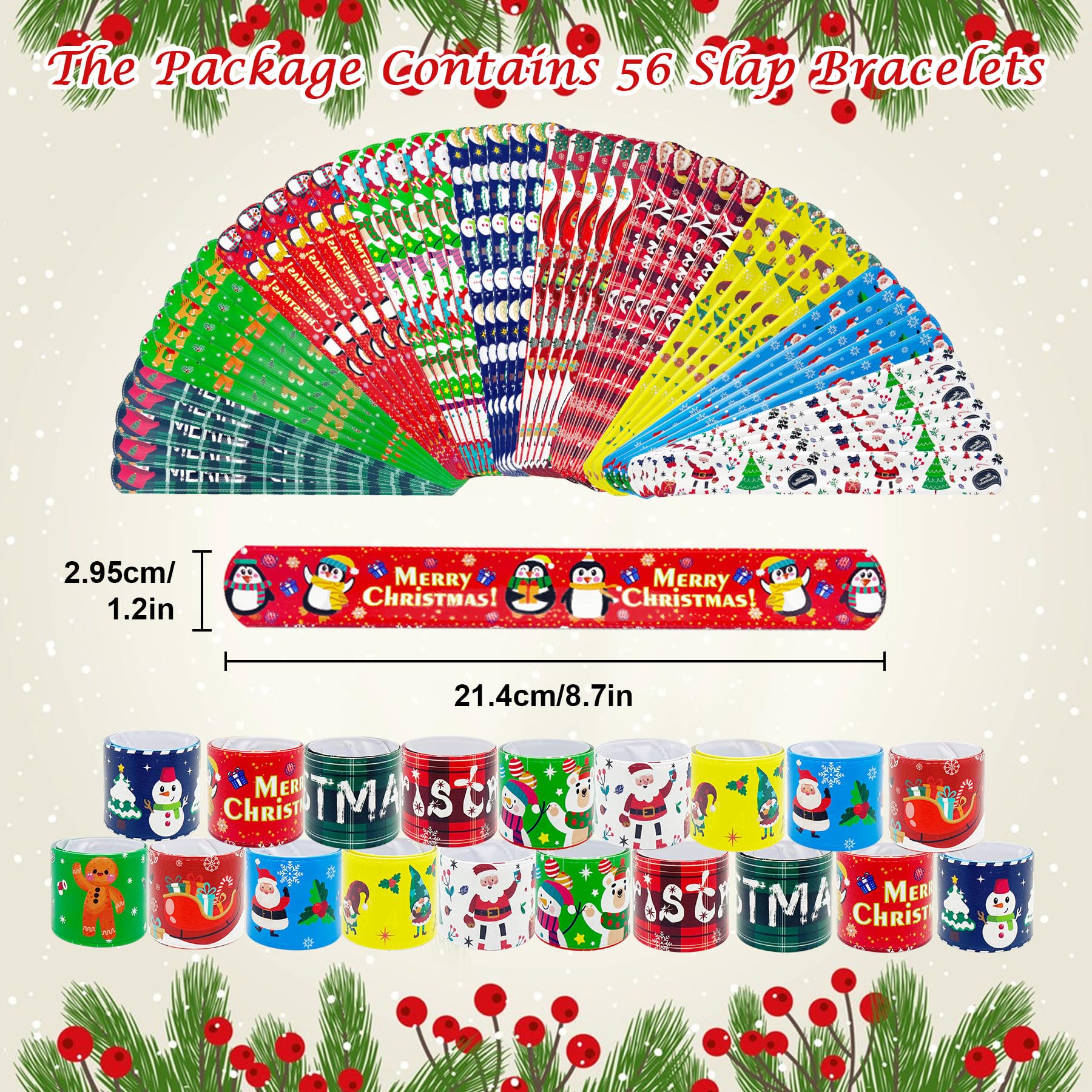 Junebrushs 56 Pack Christmas Slap Bracelets For Kids Xmas Slap Bands Wristband Christmas Party Favors Snap Bracelets Bulk For Bo