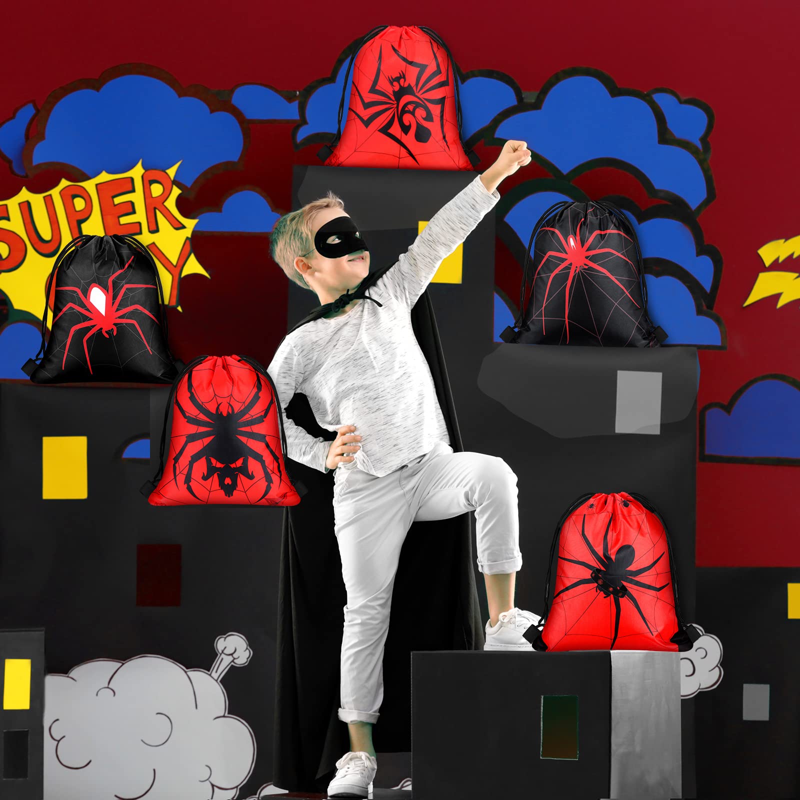 Lothee 32 Pieces Spider Web Birthday Party Decoration Set Spider Web Drawstring Bags Funny Travel Sack Backpack Rubber Bracelets