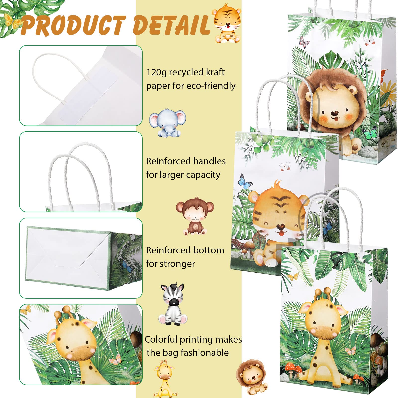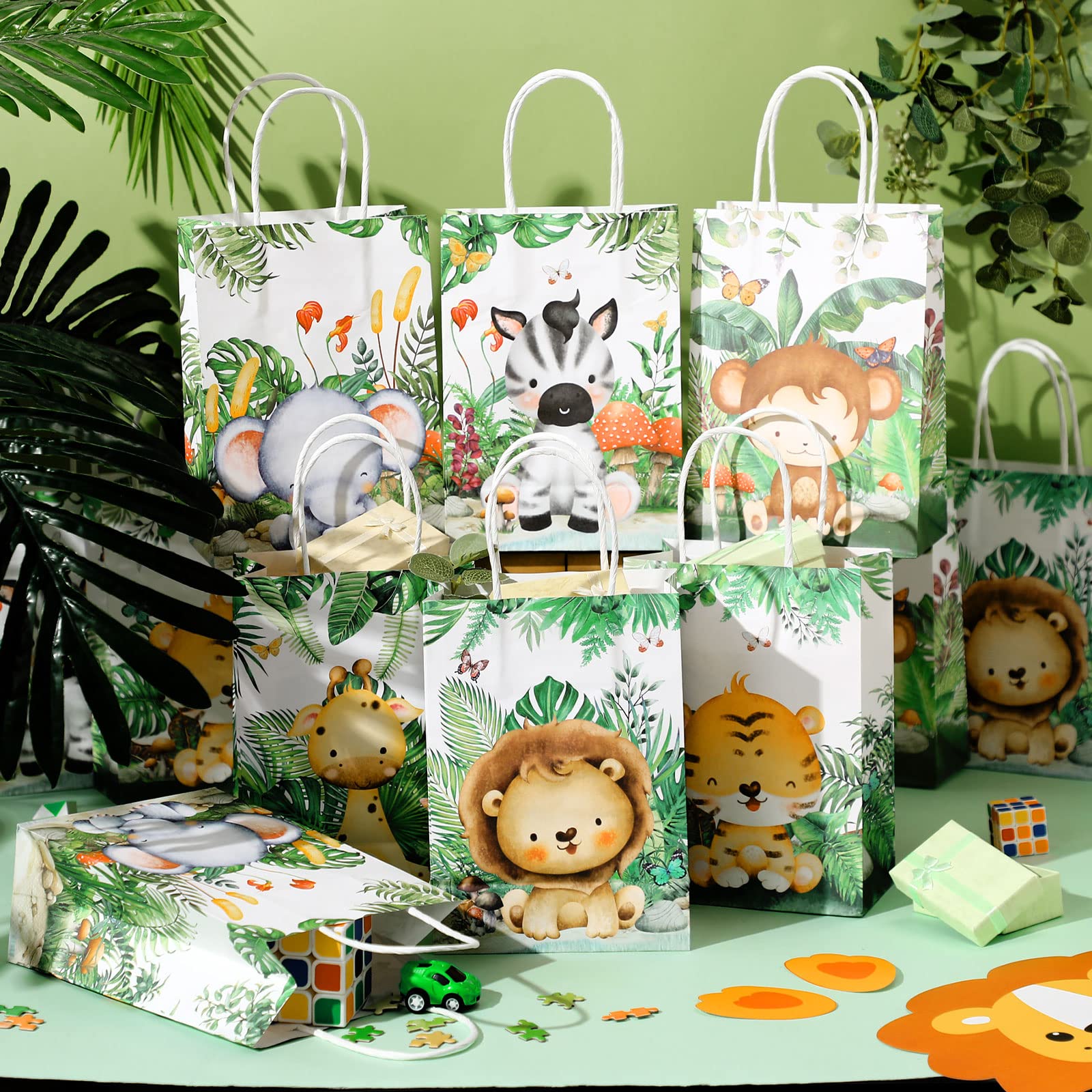 Safari Goodie Bag Safari Jungle Party Favor Bags With Handles For Kids Birthday Safari Themed Party Supplies (Watercolor Style,