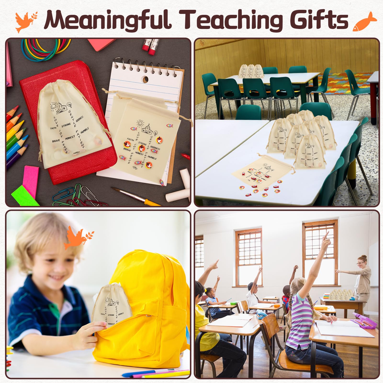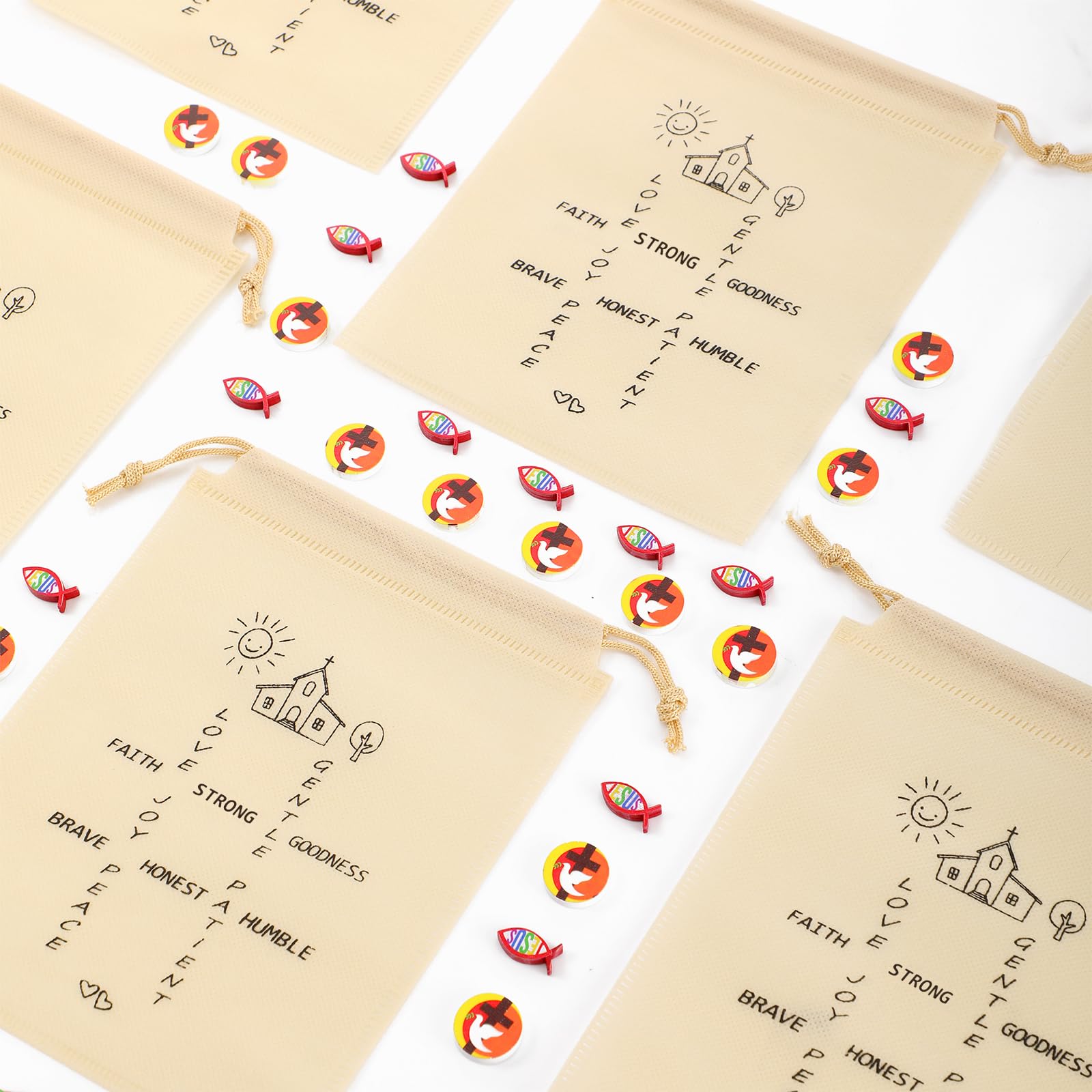 Sumind 36 Set Christian Tic Tac Toe Game Gift for Kids Religious Party Favors with Jesus Bible Mini Wooden Jesus Fish Game Draws