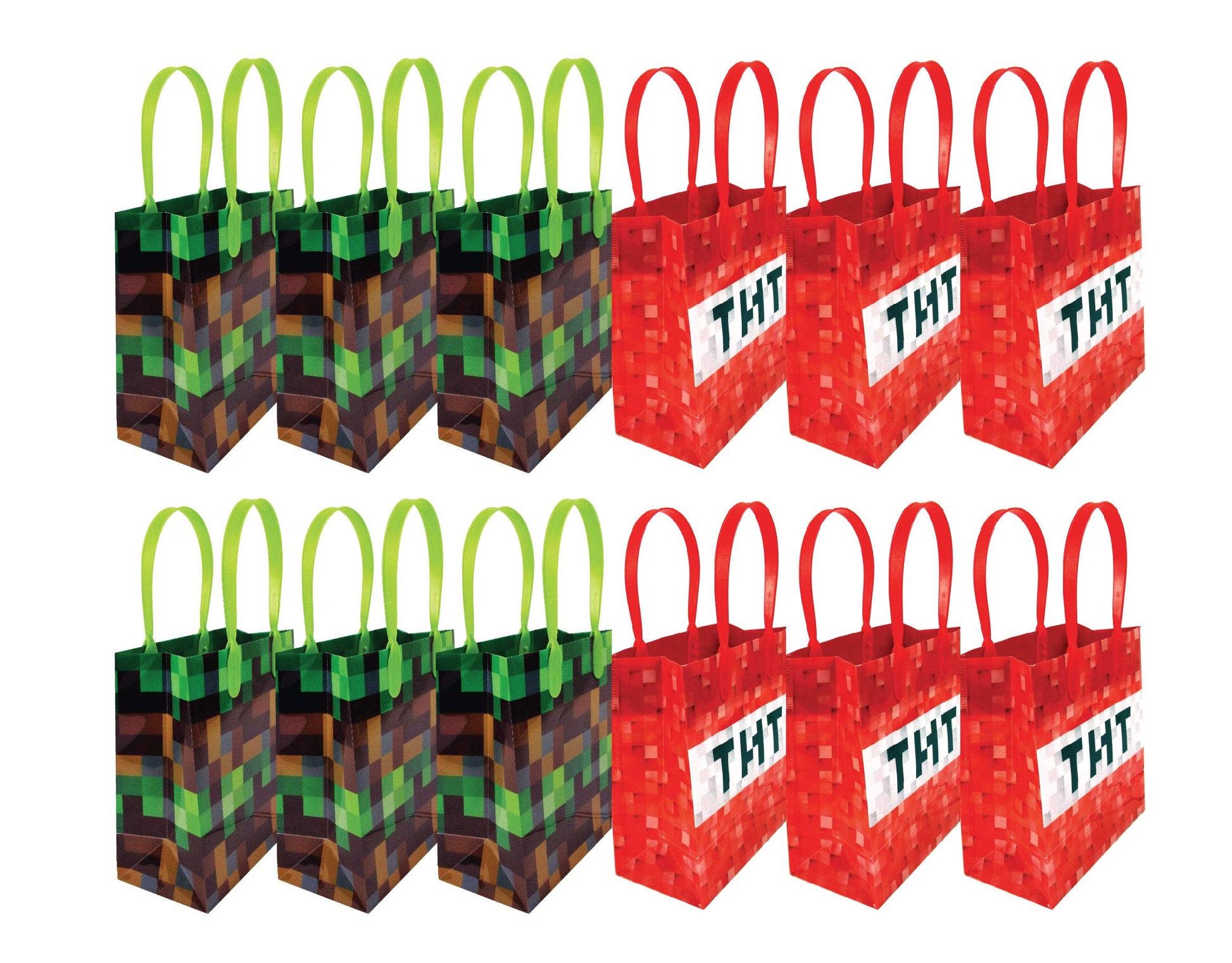 TINYMILLS Pixel Miner Party Favor Set of 60 Pcs (12 Party Favor Treat Goody Bags with Handles, 24 Self-Ink Stamps for Kids, 12 m