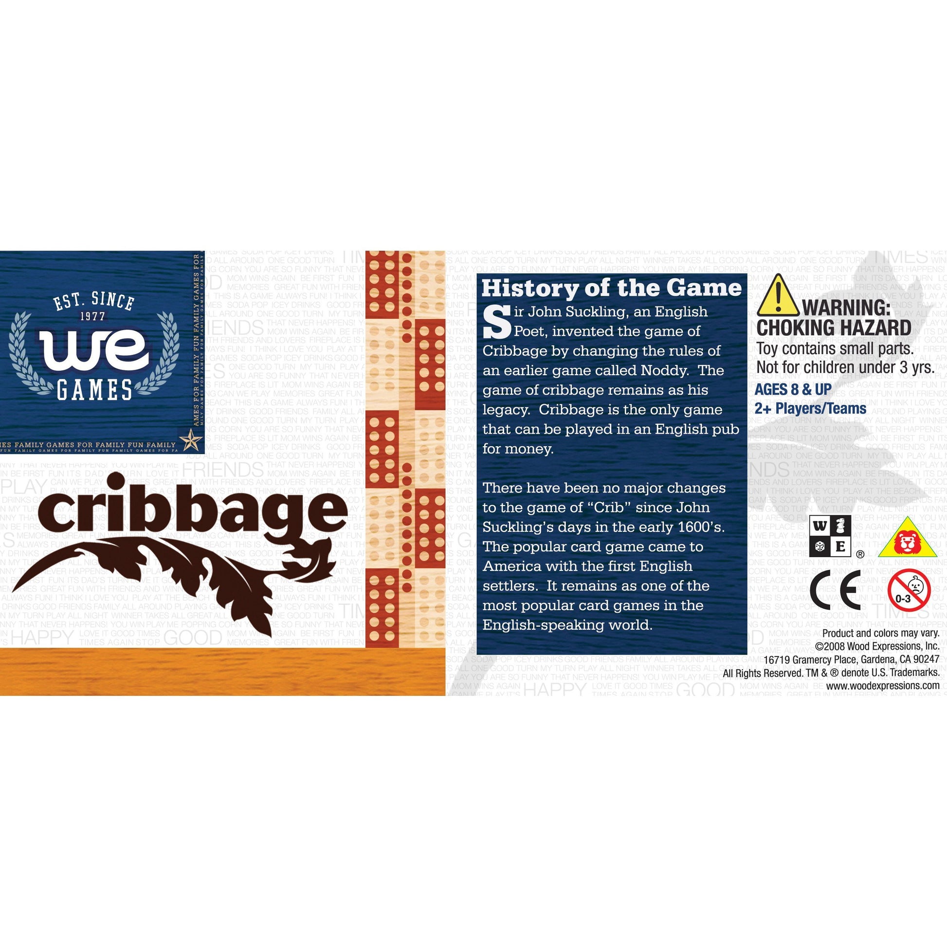 - Q: What materials are used in the WE Games Classic Cribbage Board Set? A: The WE Games Classic Cribbage Board Set is crafted from high-quality solid oak wood, ensuring durability and an elegant appearance. It features a satin finish that enhances its aesthetic appeal.