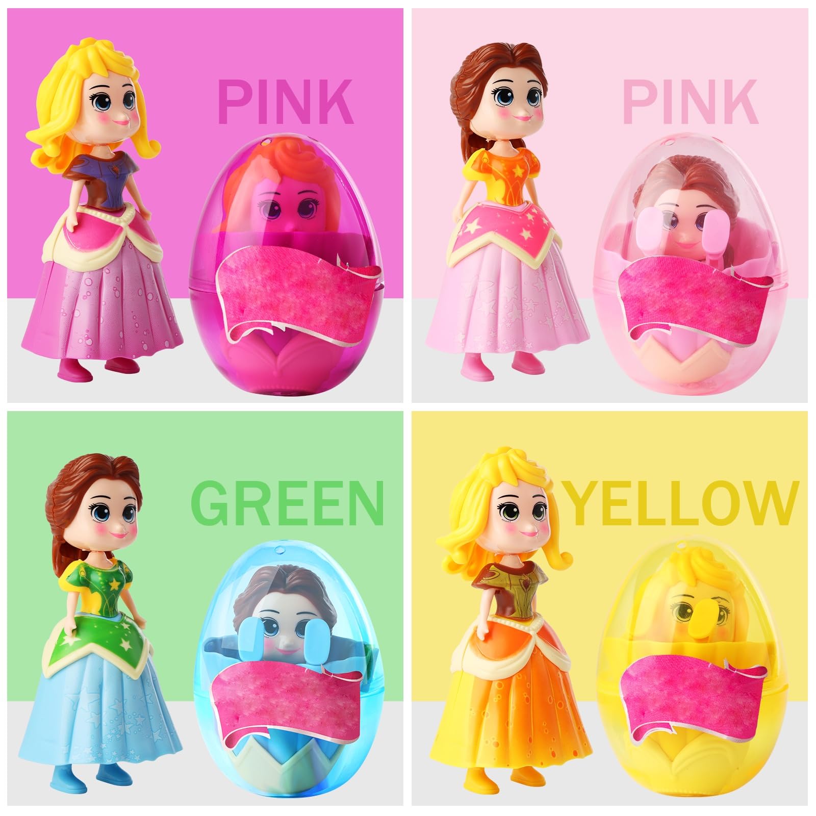 Features: 1. The 4 pack easter eggs with prefilled princess figure are perfect for kids boys girls toddlers easter basket stuffers, easter gifts, easter basket fillers, party favors, party supplies, stocking stuffers, christmas stockings, christmas gifts, school classroom rewards, carnival prizes, pinata, goodie bags and more. 2. 4 Pack plastic Easter eggs are prefilled with 4 designs of deformable princess action models, all beautiful and elegant in bearing. 3. The color of the eggs is very bright, and it is easy to attract kids attention. Perfect gifts as easter basket stuffers for 3-10 year girls easter egg hunt event, easter egg party. 4. The deformation eggs are easy and fun to play, just develop kids ideas to make it a princess figure, thats fun.