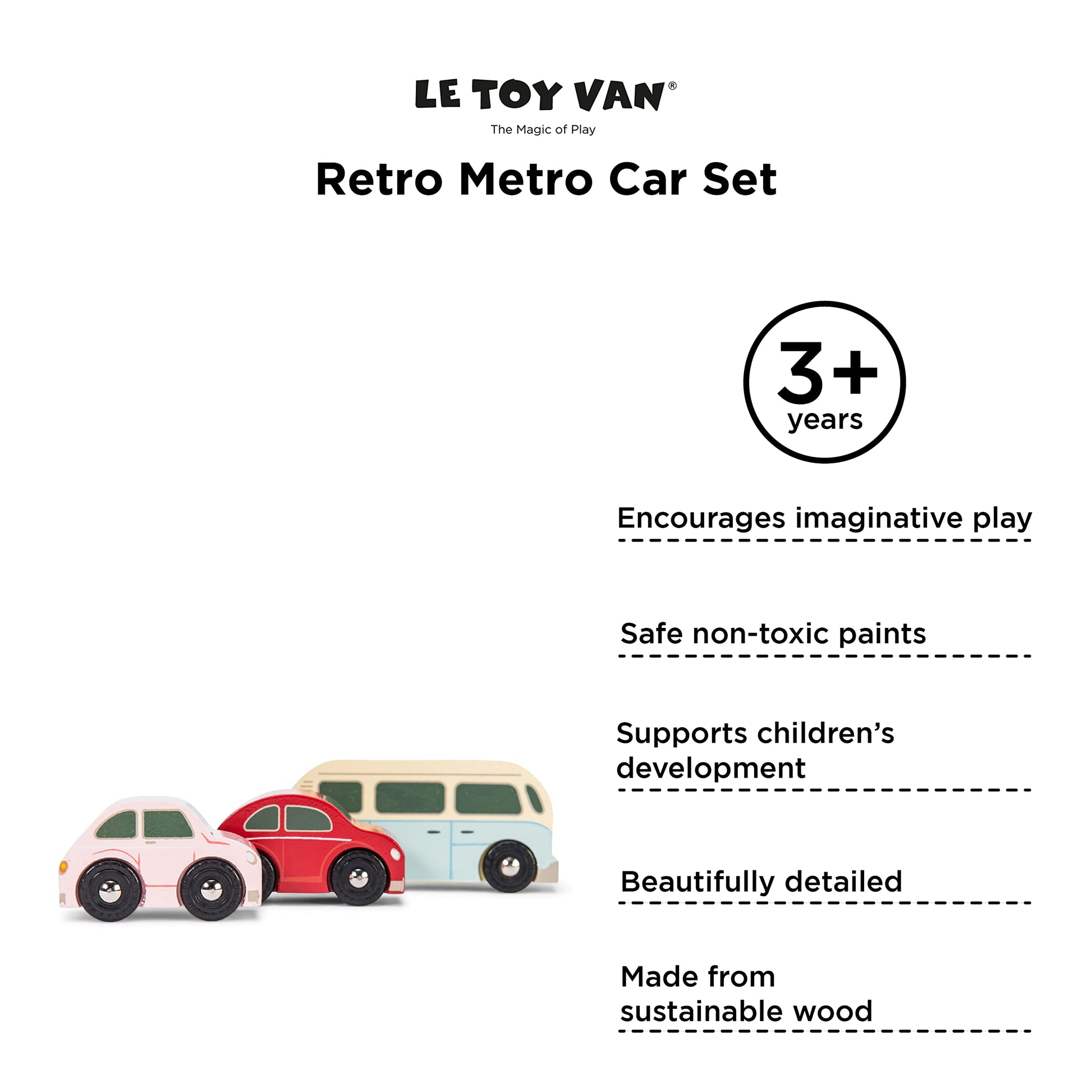 Le Toy Van - Cars & Construction Wooden Retro Metro Car Set Car Toy Play Set - Set 3 Cars | Boys Play Vehicle Kids Role Play Toy