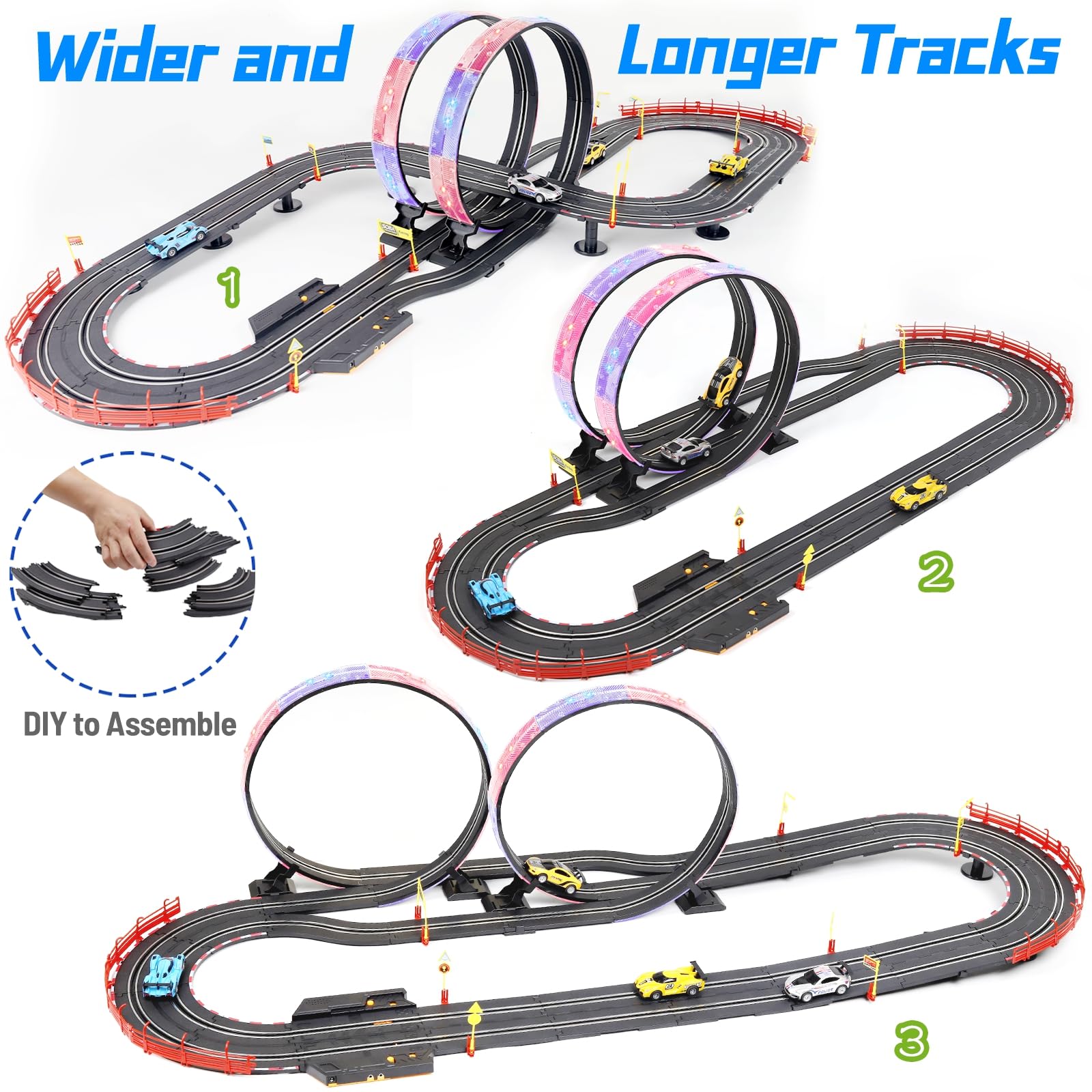 - Q: Does the set come with anything to help track lap times? A: Yes, the set includes two automatic lap counters, allowing players to keep track of their laps and compete more effectively, adding an extra layer of fun to the racing experience.