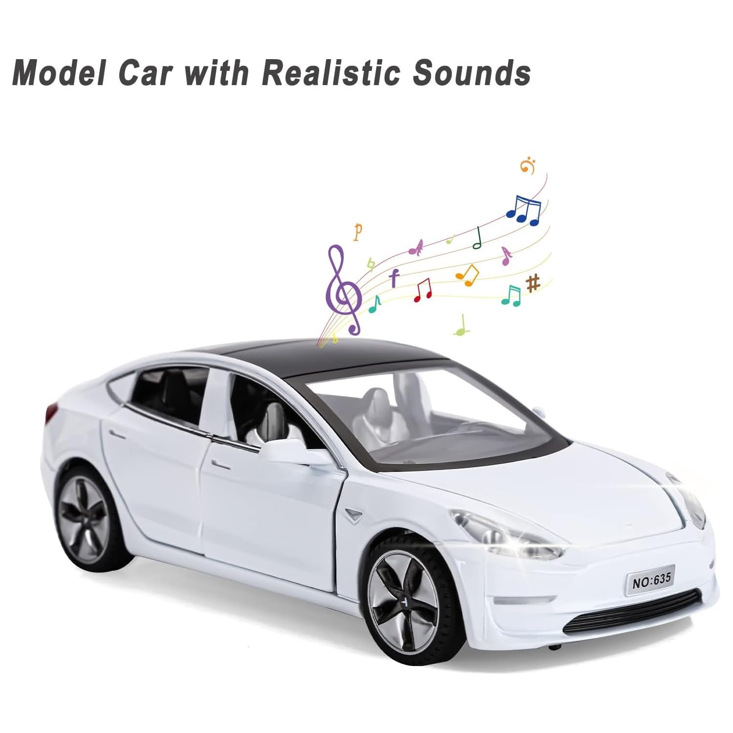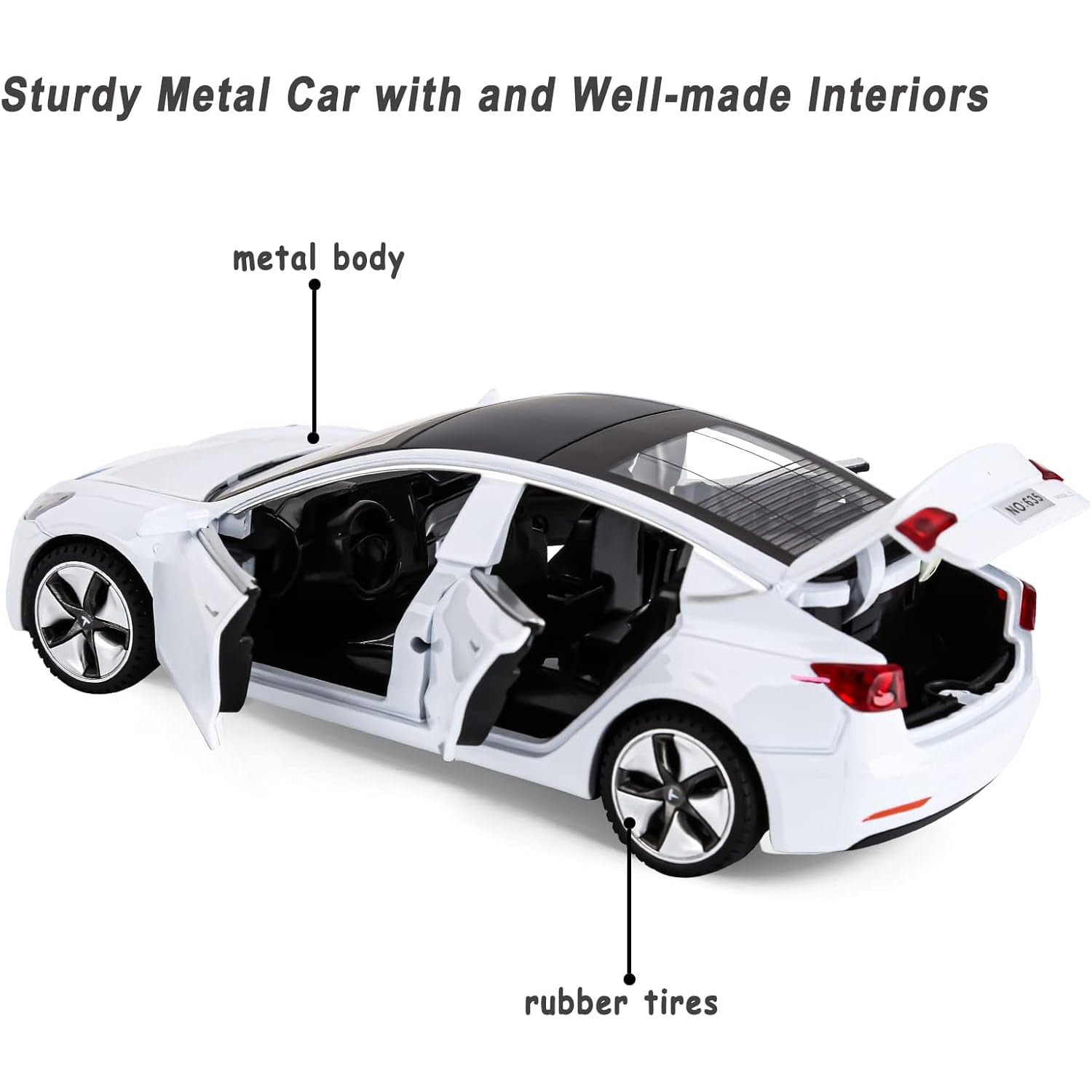 Toy Car Model 3 Diecast Metal Model Cars Pull Back car for Boys and Girls Age 3 - 12 Years Old (White)
