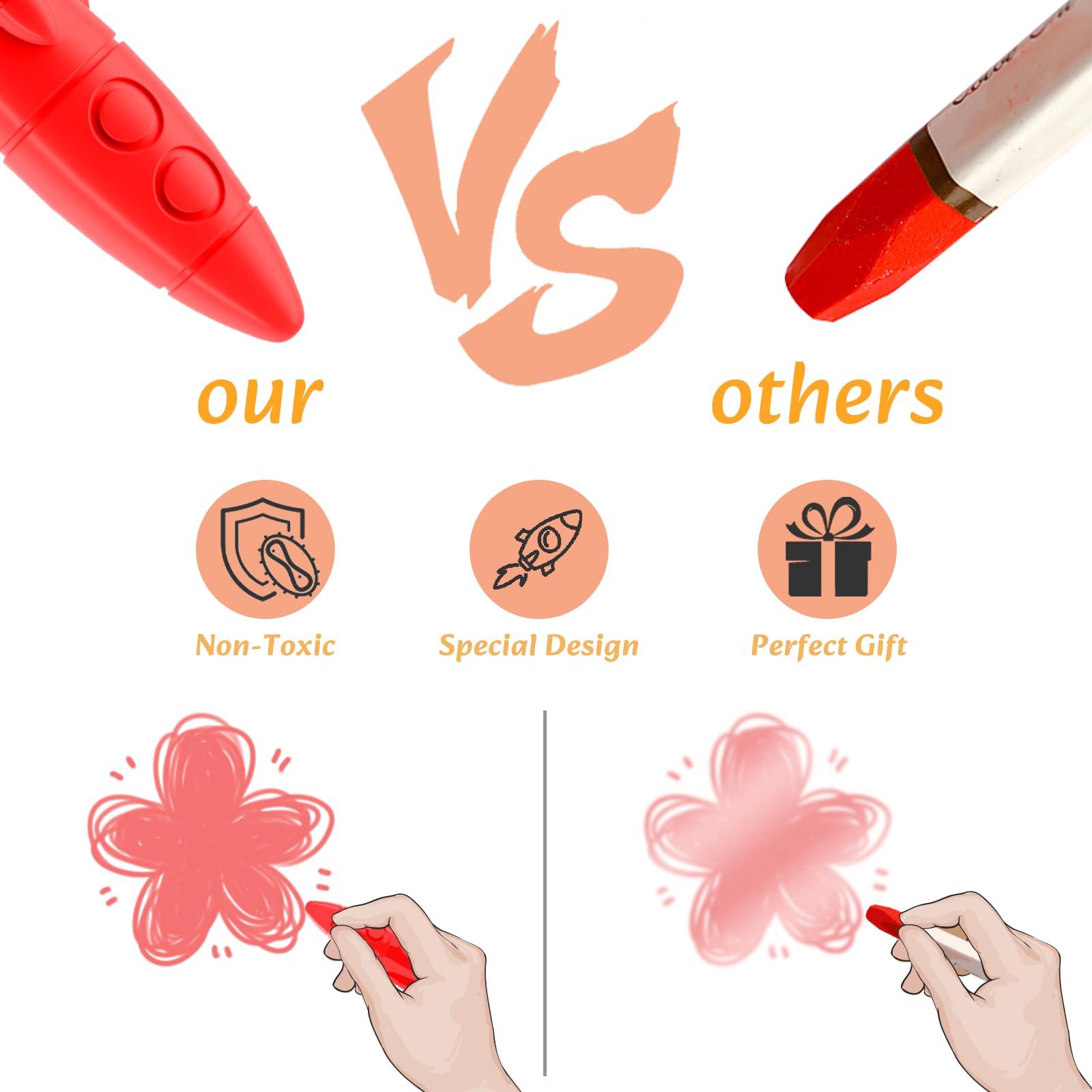 Non-Toxic Crayons:The Rocket Crayons Is Made Of Non Toxic Materials,It Is A Safe Crayons For Toddlers To Use. Unbreakable Crayons:With Of Our Special Material Design,Our Crayons Unbreakable,Toddlers Are Naturally Playful,Just Because Easy To Break Affect Toddlers,It'S Not What We Wanted. Washable Crayons:Our Crayons Are Washable,Easy To Be Wiped Off With Water,Don'T Worry About Stains On Clothes,Hands,Sofas. Special Design & Multi-Colored:Colorful Colors Give Your Kids A Colorful Childhood,Our Crayons Offer 12 Different Colors In A Box,Special Rocket Design Makes Them Easier And More Comfortable To Hold For Kids Who Are Not Skilled In Crayons. Perfect Gift:The Rocket Crayons Which Is Ideal As A Gift For Toddler,Kids,Family,Students,Etc.If You Fail To Use The Crayons, Please Email Us And We Will Help You Solve The Problem Within 24 Hours.