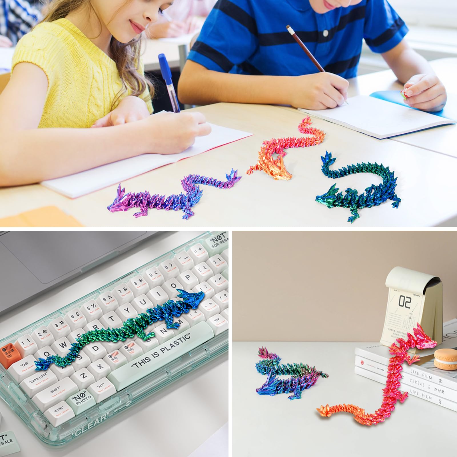 ?Colorful 3d Printed Dragon? - Ignite your child's imagination with our 4 brightly colored dragon, each featuring a fun color! Perfect for collectors and little adventurers who love dragons. | ?Super Flexible Fun? - Our dragons are not just toys; they