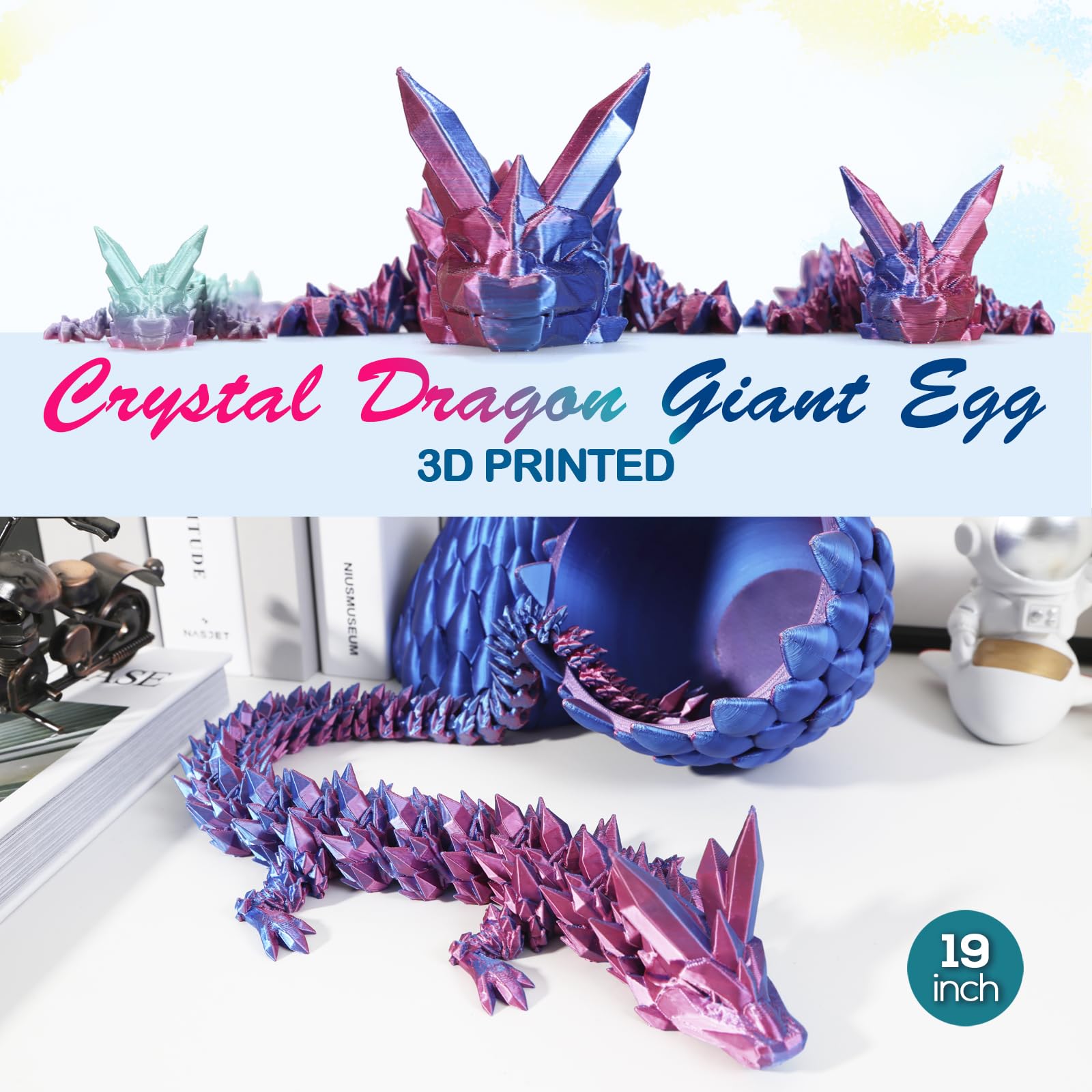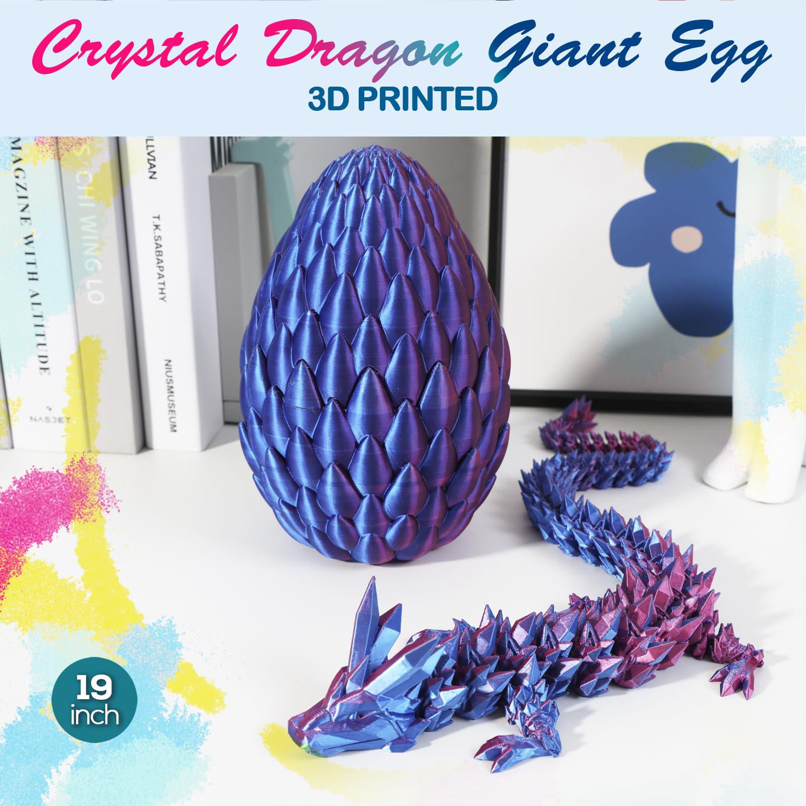 3D Printed Dragon,Dragon Eggs With Dragon Inside,Surprise Dragon Egg Toy,19'' Full Articulated Crystal 3D Dragonls(Giant Dragon