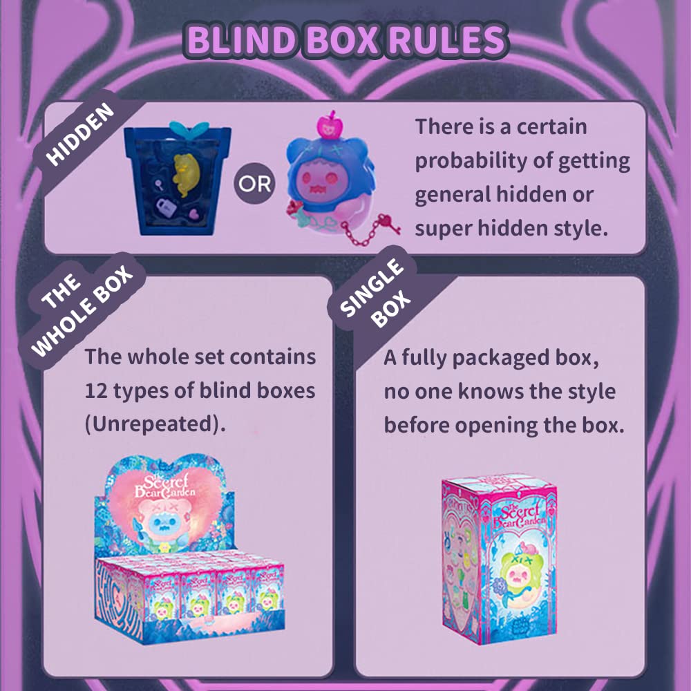 Ghost Bear The Secret Bear Garden Series. ?12 regular figures, 1 general hidden edition, and 1 super hidden edition. ?Enjoy the exciting moment of unboxing! Hope you could get your favorite one.NOTE: ?The figures of the blind boxes are shipped randomly and can't be specified. ?The whole set consists of 12 different figures. ?Return is not supported once the packaging box is opened, for it can't be sold again after being opened.