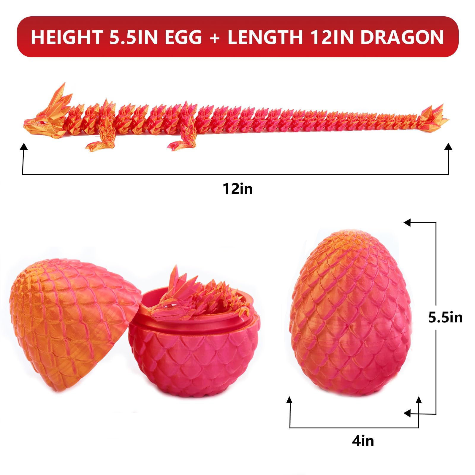 Exqdynm 3D Printed Mystery Dragon Egg Fidget Toy 12'' Crystal Articulated Dragon With Eyes Decorative Collectibles