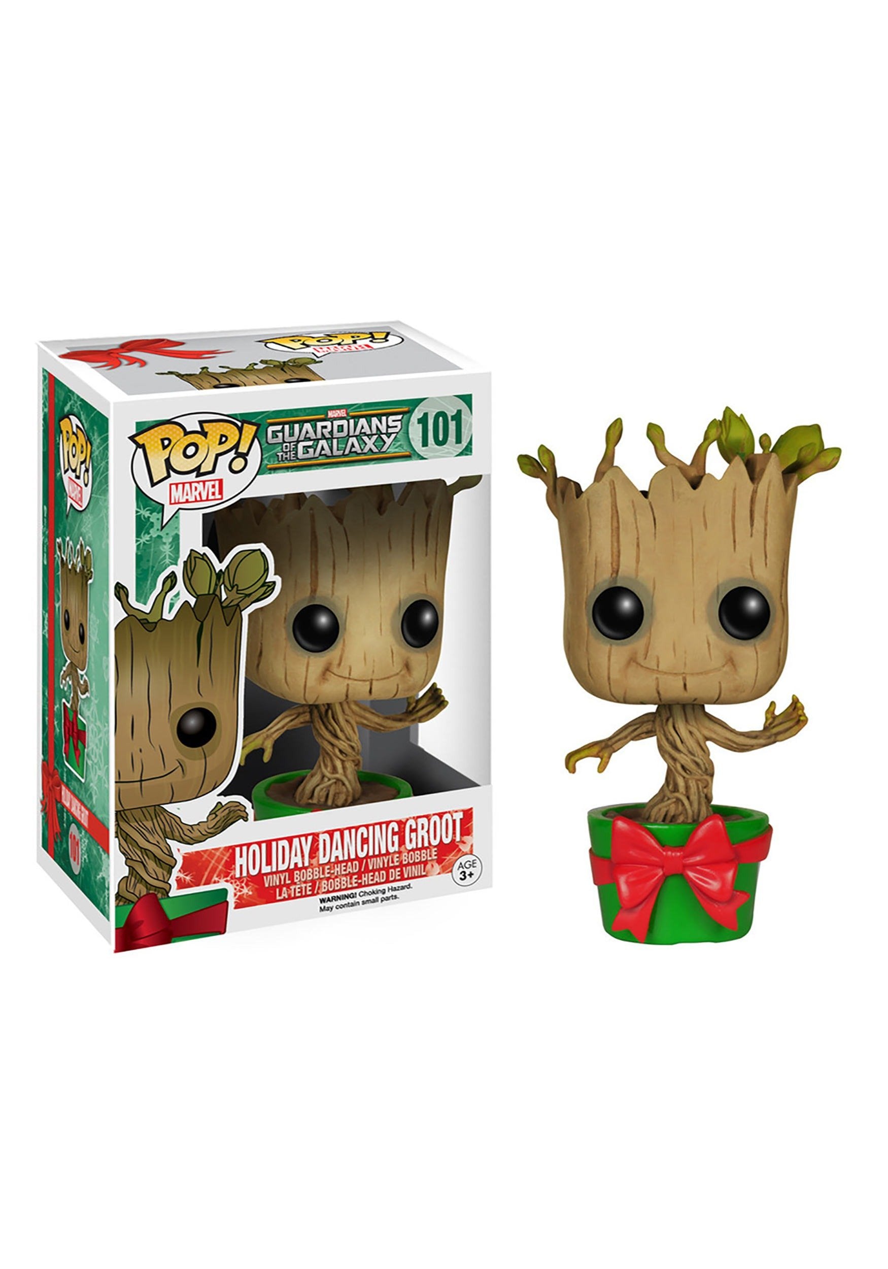 POP Marvel: GOTG - Holiday Dancing Groot from Funko! Figure stands 3 3/4 Inch and comes in a window display box. Check out the other POP figures from Funko! Collect them all.