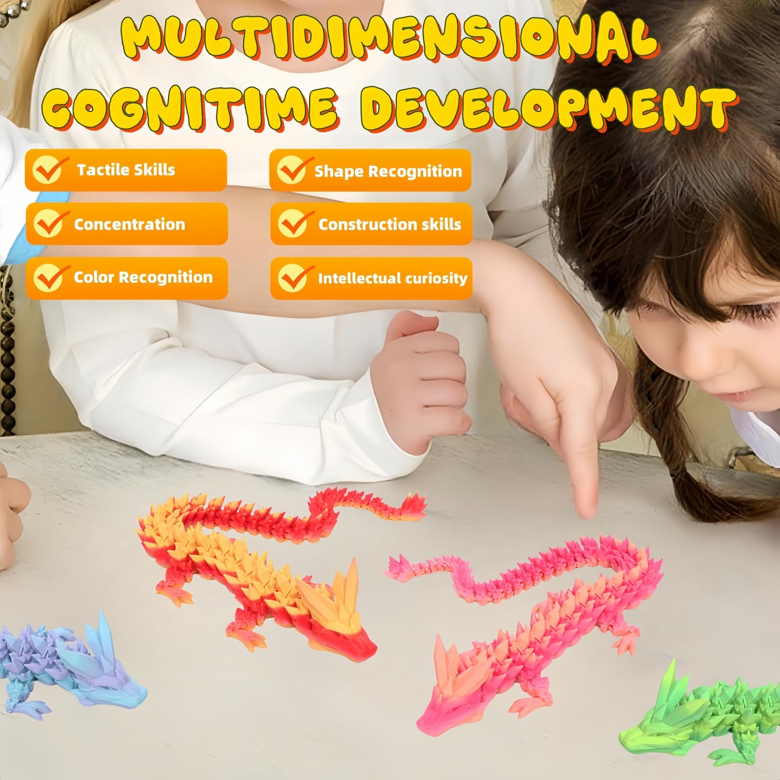 Mayical 4Pcs 12'' 3D Printed Dragons - 3D Printed Animals For Flexible Articulated Crystal Dragons, Perfect Children'S Day Gifts