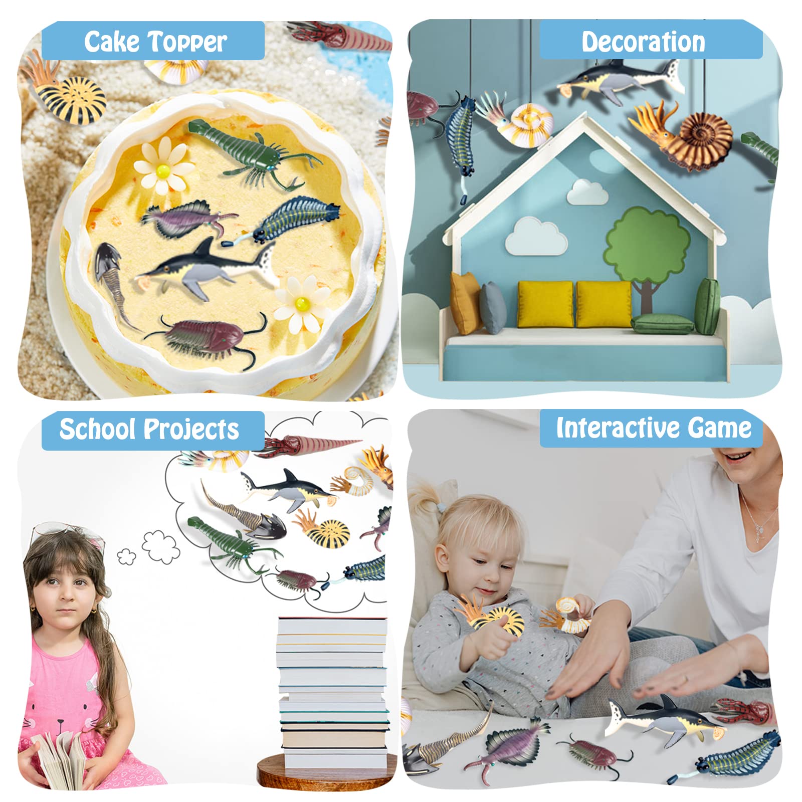 Uncommonly Modeled Prehistoric Animals - Most childrens models of prehistoric animals are of dinosaurs. The earlier animals are often neglected, and this set goes back to some of the earliest animals, twice the time back of dinosaurs, and represent animals that fossil hunters are more likely to find. | Nice Collections of Marine Figures - This set contains Anomalocaris, Opabinia, Cameroceras, Cephalaspis, Eurypteroid, Cephalaspis, Ophthalmosaurus, Trilobita, 2 Nautilus, Australia Hornstone | Solid, Detailed Sea Creatures - These ocean animal figurines are solid with no holes which makes them perfect for bath or water play. They would be fun toys for children and encourage imaginative play. These beautiful sea animal toys could also be used in a classroom display or library display, use them in the science center and water table, perfect for pretend play, sensory bins, etc. | Nice Variety and Great Quality - Safe first! our product made of environmental PVC. They are a good value 11 different animals, all well formed and realistically detailed, with unique shapes and textures, solid and sturdy, the prehistoric toys looks like they are living. | Awesome Gift - Such cute and different varieties of sea figures are worth to be collected, exquisite design and hand paint process, perfect Christmas birthday gift for kids and collector. Great for school project, education purposes, creative play, party favors, cake topper, bath toy, pool toy. Spark childrens imagination and explore the wonderful deep sea creatures.