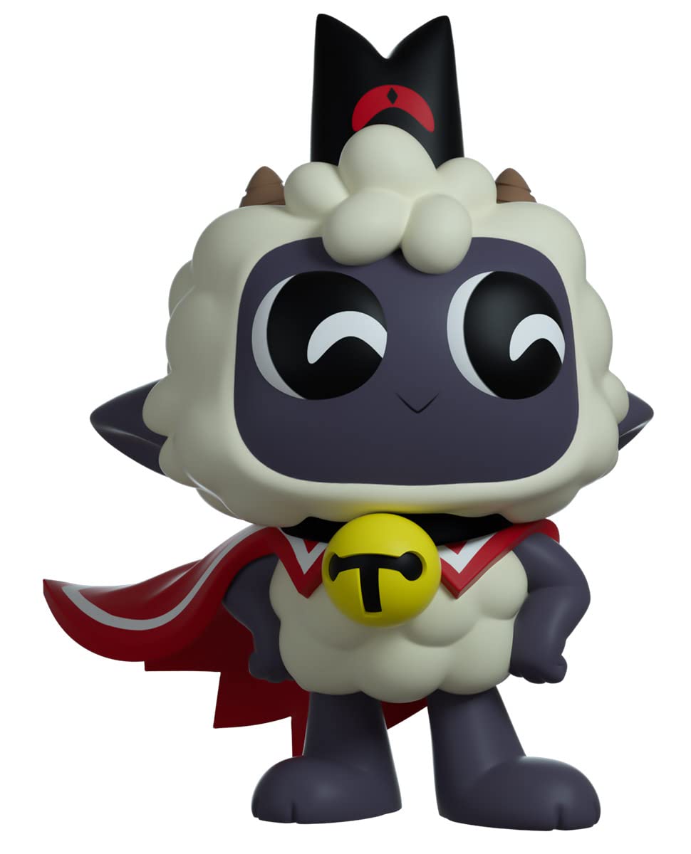Youtooz Cult of the Lamb Collection: The Youtooz Lamb figure has enticed Youtooz into their cult with the cutest figure imaginable! At 3.7 inches tall, they stand with hands folded on their hips and striking a triumphant pose with a vibrant red and white cloak, fixed at the front with a yellow bell, flows majestically in the wind! | Youtooz Vinyl Material: This 5.4