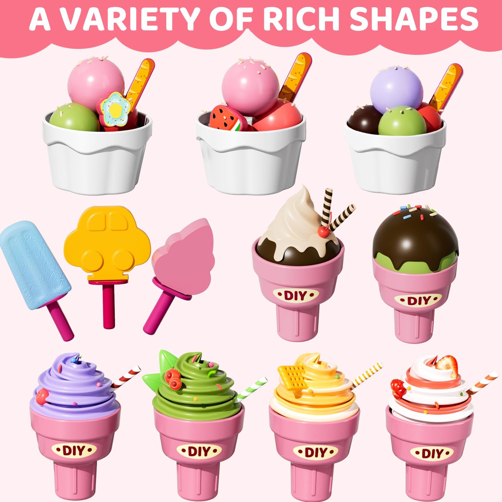 Beby Buty Ice Cream Toys Air Dry Clay Kit for Kids, 80 PCS Ice Cream Shop Set Food Toys for Kids Girls 3 4 5 6 Years Old, Preten