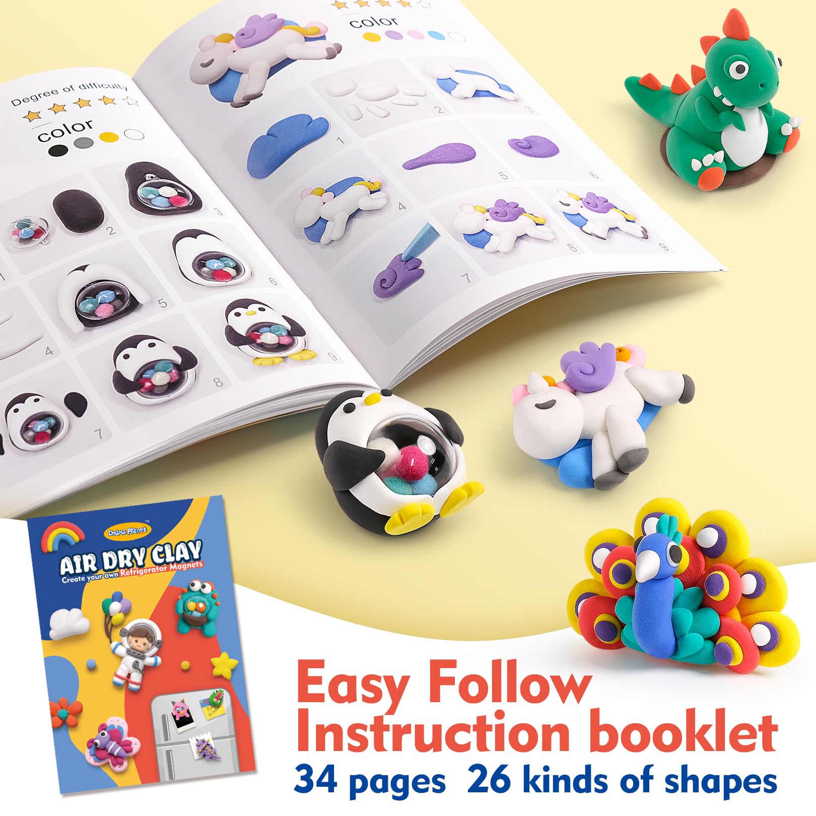 Drama Planet Air Dry Clay Kit for Kids, Create Your Own Refrigerator Magnets with Modeling Clay, Art Activity Set, Craft Project