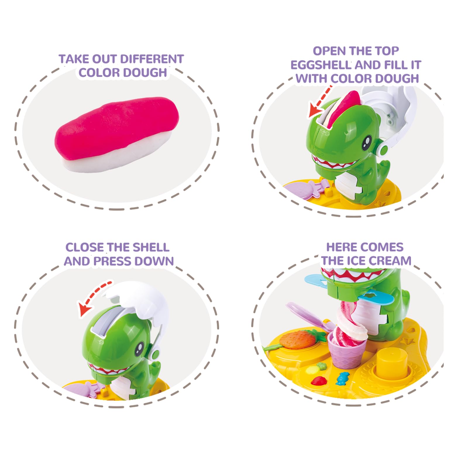 - Q: What materials are used in the Dinosaur Ice Cream Playdough Set? A: The playset is made from high-quality playdough material that is safe for children. It includes 5 cans of colorful modeling compound in purple, green, blue, yellow, and pink.