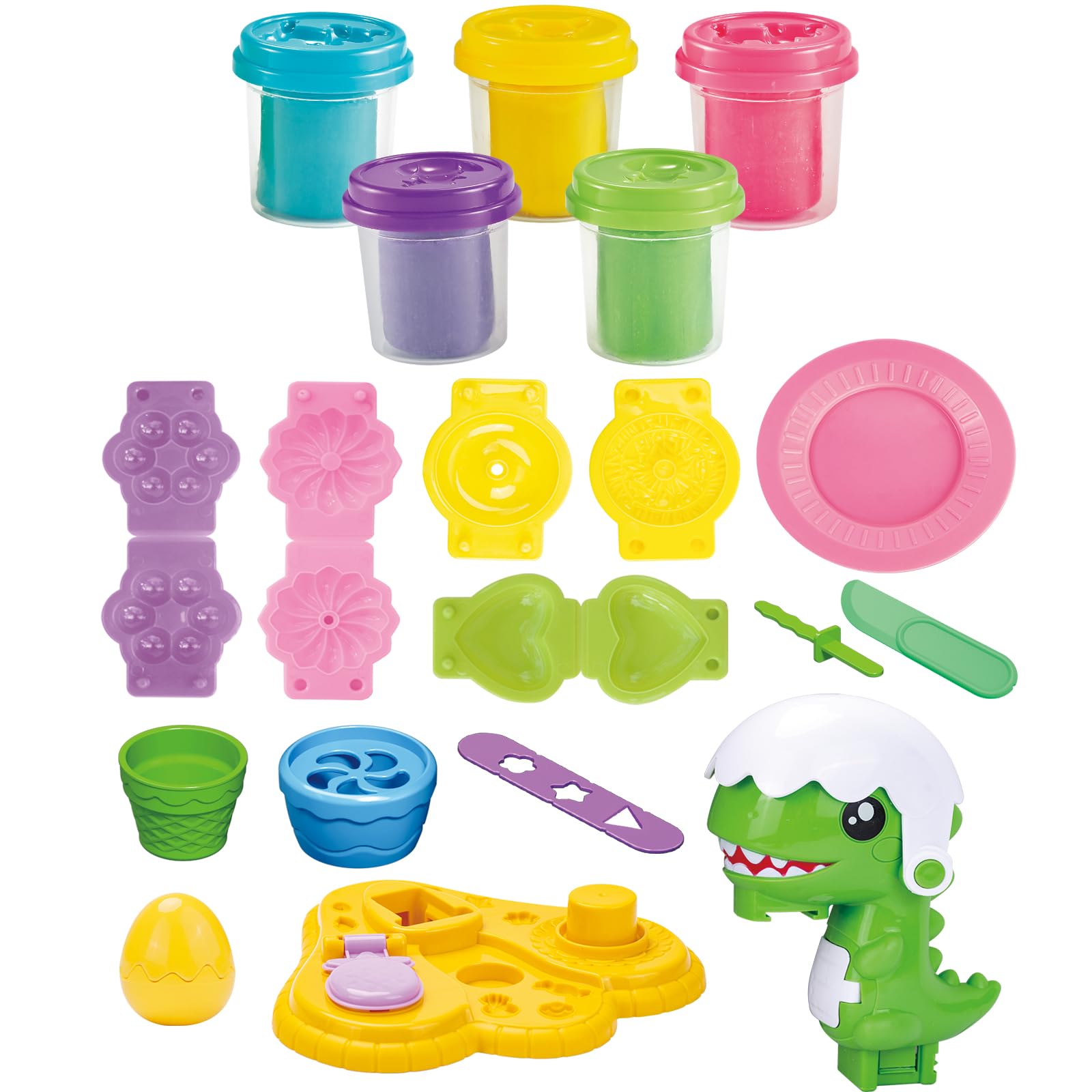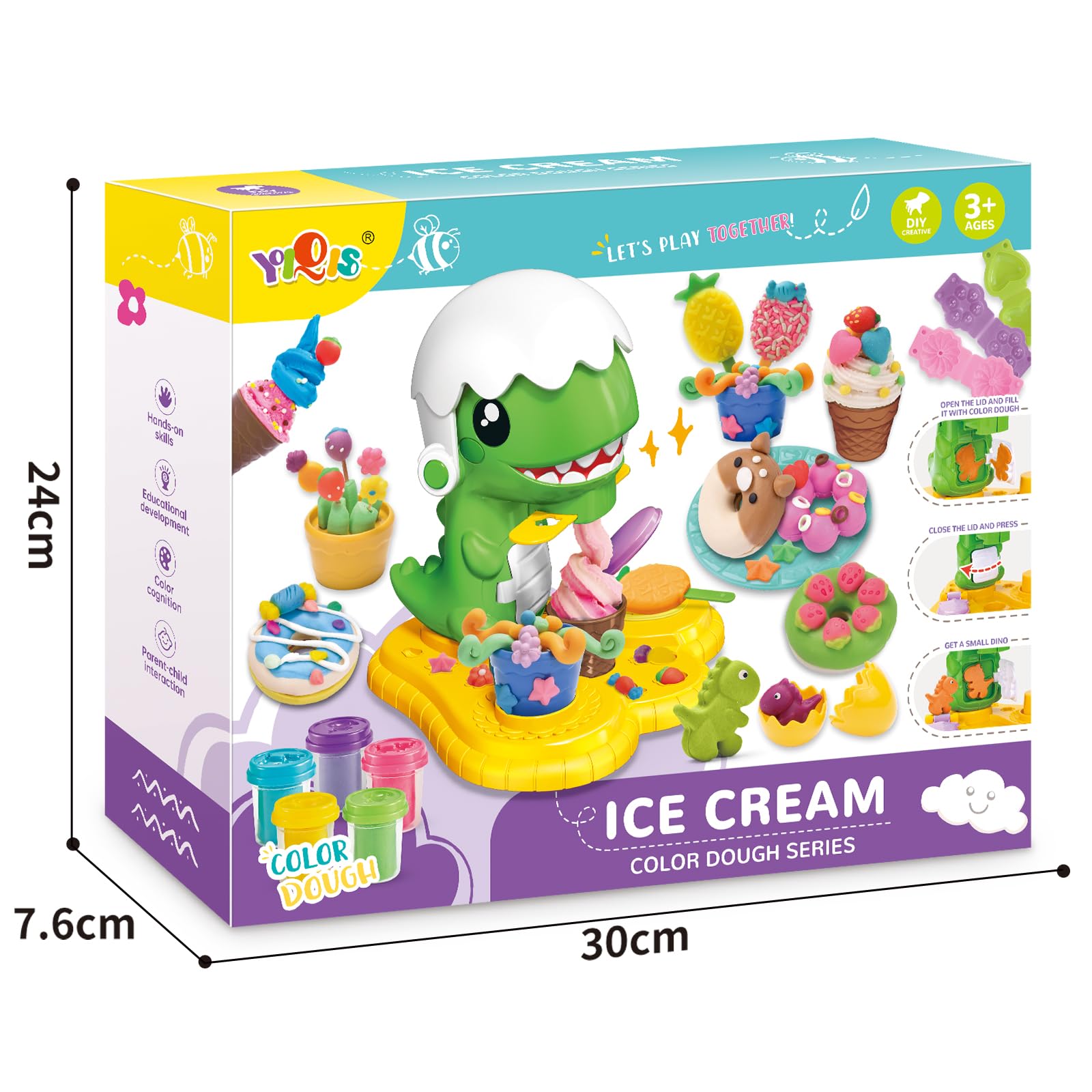 View compareHASAYAQI Dinosaur Ice Cream Playdough Set for Kids 4-8, 5 Cans Multicolor Modeling Compound, Creative Kitchen Playset