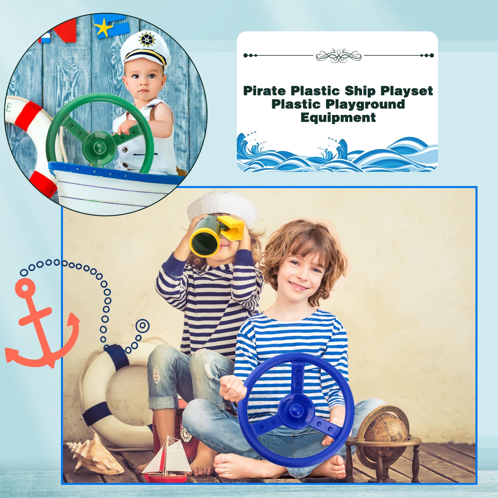 View compareHaconba 2 Pack Steering Wheel Playset Plastic Pirate Ships Wheel With Mounting Tools For Kids Playground Outdoor Gym(Green,Blue)