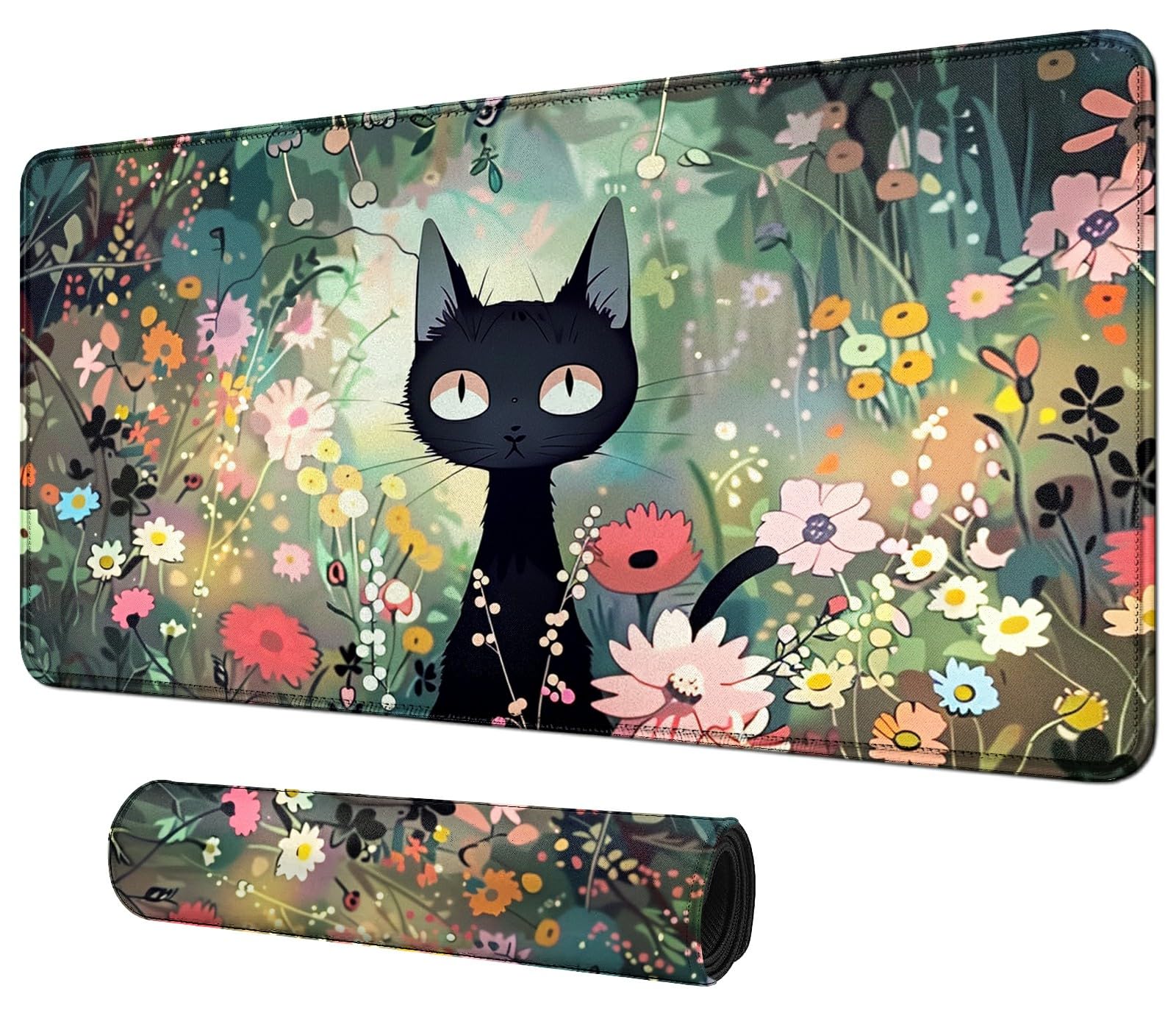 Bfdhgqzc Black Cat Among Flowers For Mtg & Tcg Playmat, 24'' X 14'' Mouse Pad For Mtg/Rpg/Ccg Trading Card Games