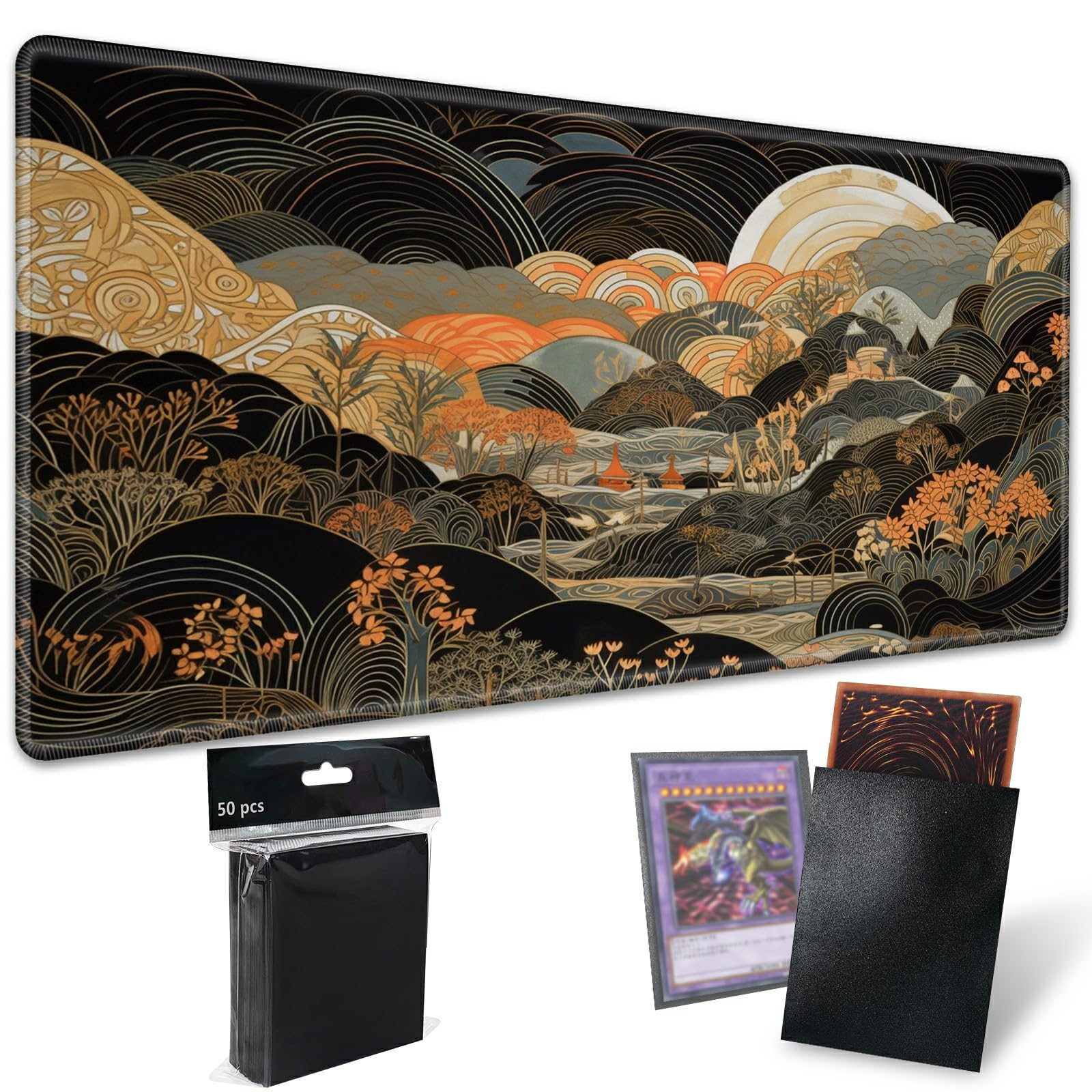 for MTG Playmat TCG Board Game Mat Plus 50 Pcs Card Sleeves, 24 x 14 Table Mats Game Mousepad with Soft Surface Non-Slip Base fo