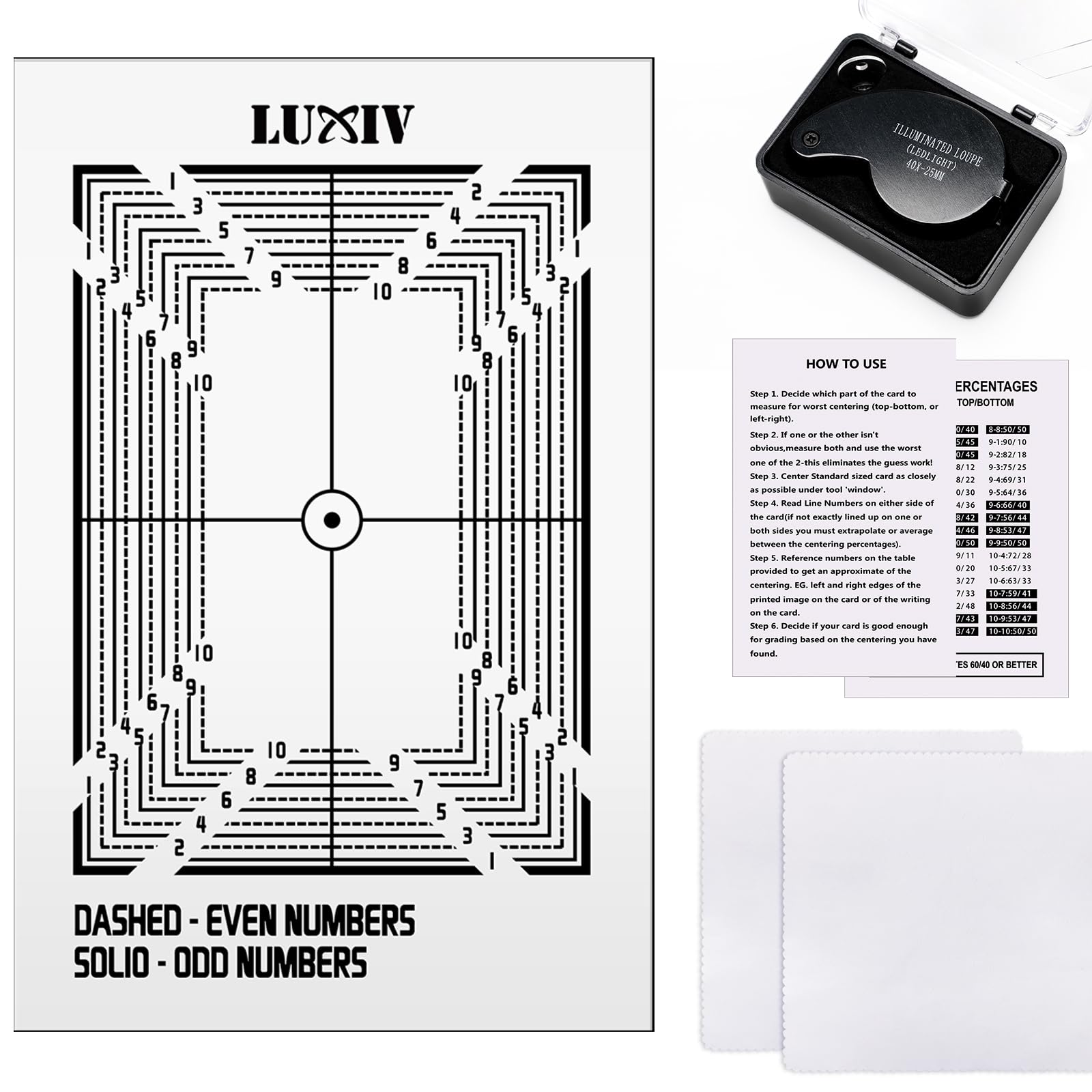 View compareLuxiv Card Grading Centering Tool Kit, Card Center Tool With 30X Magnifying Implement, 2 Pcs Clean Cloth, Centering Guide Center