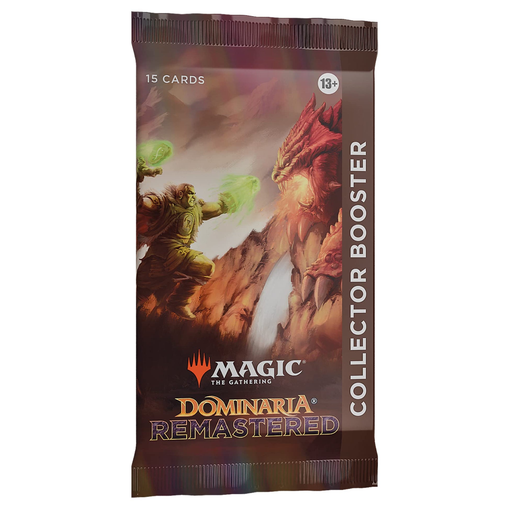 - Q: What is included in the Magic: The Gathering Dominaria Remastered Collector Booster? A: The Dominaria Remastered Collector Booster includes 15 Magic: The Gathering cards, along with 1 Traditional Foil double-sided token. Each pack typically contains 4 cards of rarity Rare or higher, 2–5 Uncommon cards, 5–8 Common cards, and 1 foil Retro Land card.