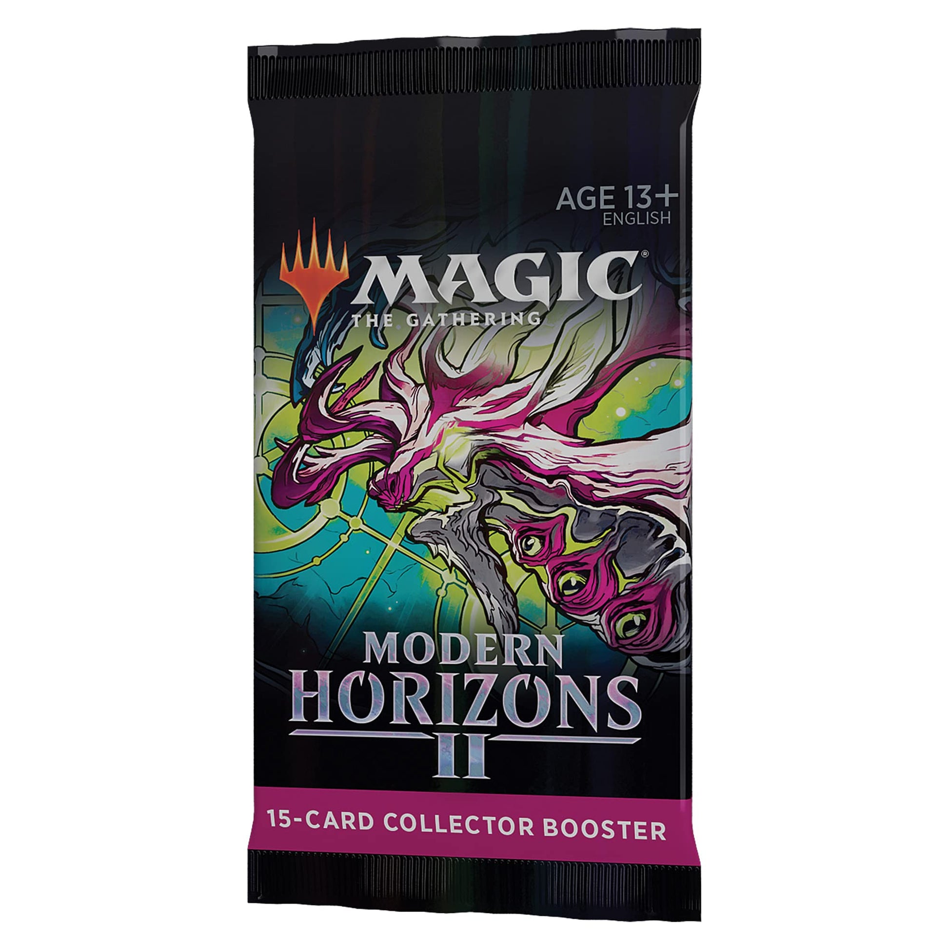 - Q: What cards are included in the Magic: The Gathering Modern Horizons 2 Collector Booster Pack? A: Each Collector Booster Pack contains 15 Magic: The Gathering cards, including 1 traditional foil double-sided token, 3 Foil Etched cards, and 9 traditional foils. You can expect a mix of 4 Rares and/or Mythic Rares, 2–6 Uncommons, 4–8 Commons, and 1 Land card.