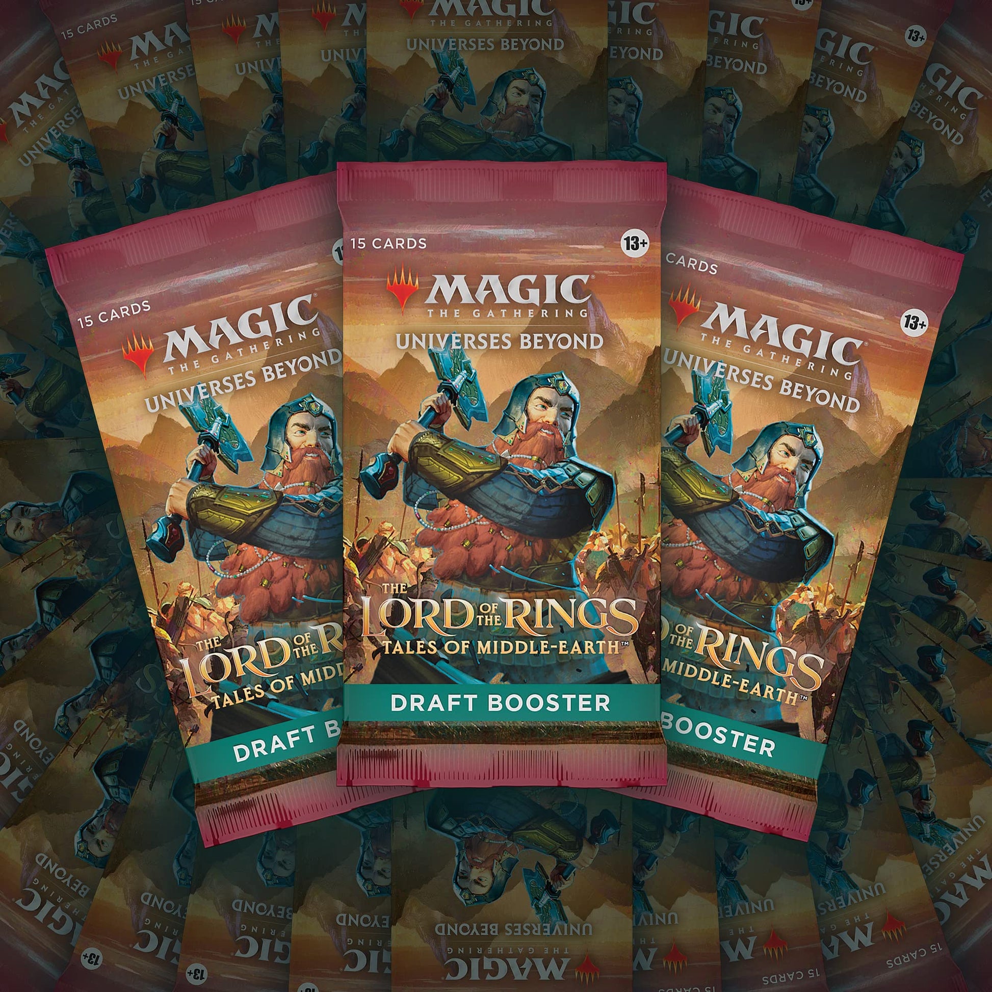 - Q: What is included in the Magic: The Gathering The Lord of The Rings Draft Booster Box? A: The Draft Booster Box contains 36 The Lord of the Rings: Tales of Middle-earth Draft Boosters, each with 15 cards, plus 1 Traditional Foil Box Topper card.