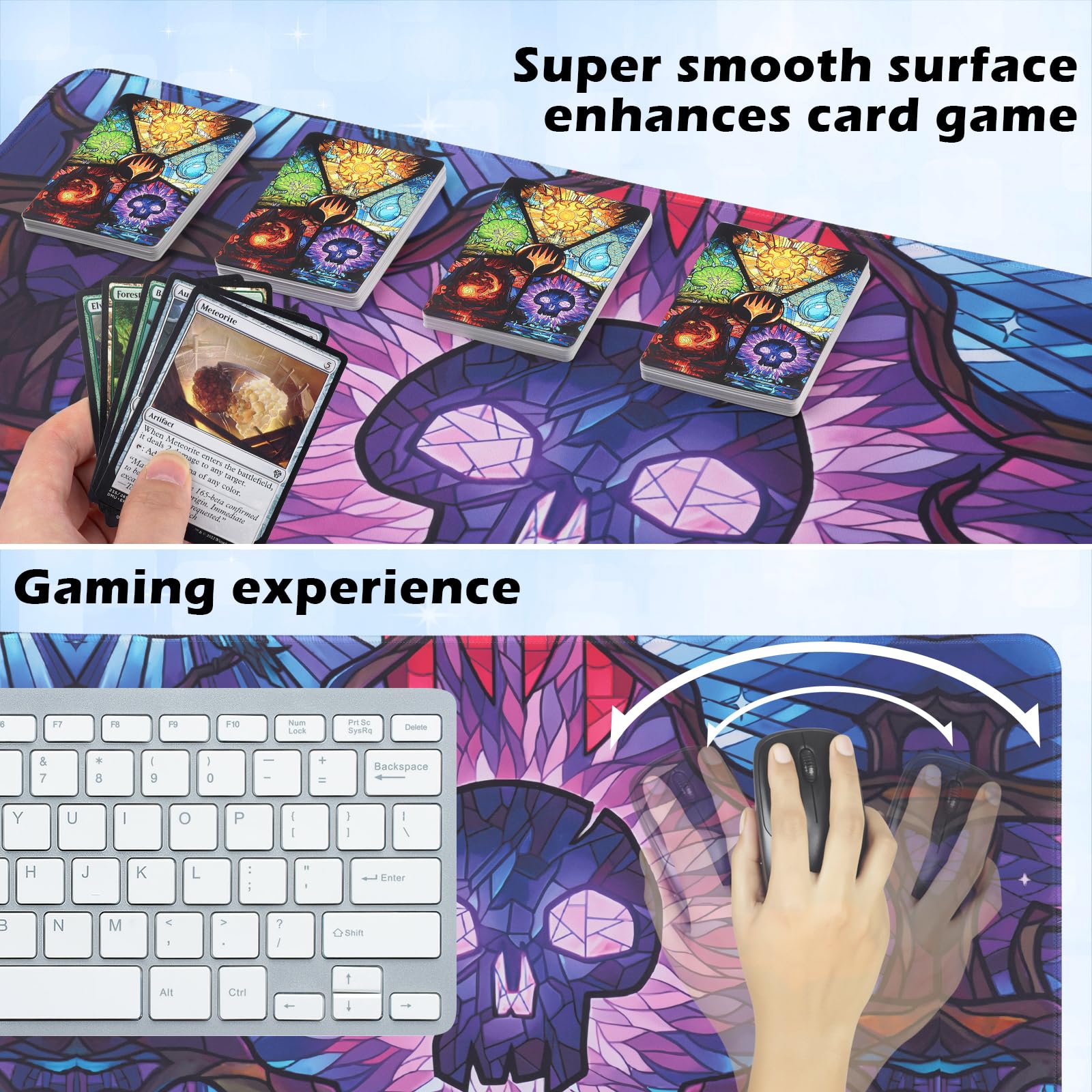Playmat for MTG - 24x14 Inches Stitched MTG Playmat with Non-Slip Rubber Base, Includes Storage Bag - Ideal for TCG, CCG, RPG Card Games