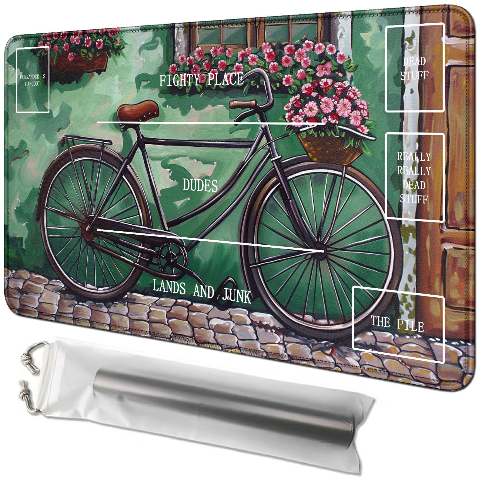Rwutytiul Bicycle Card Playmat 24 X 14 Inch With Tube Bag, Card Gameplay Mat With Zones Commander Deck Board Mtg Rpg Ccg Tcg Car