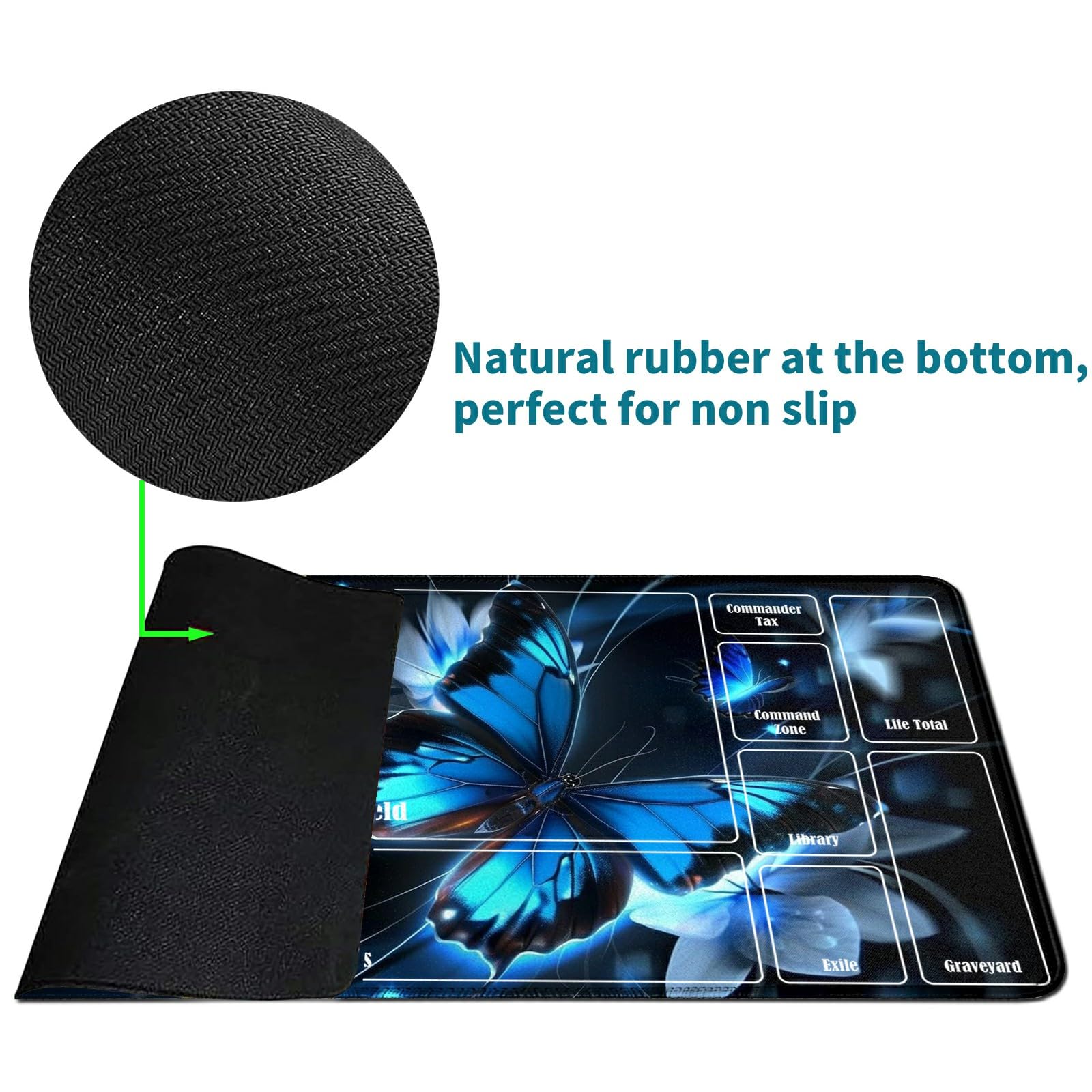 View compareRwutytiul Blue Butterfly Card Playmat 24 X 14 Inch With Tube Bag, Card Gameplay Desk Mat With Zones For Commander Deck Mtg Rpg C