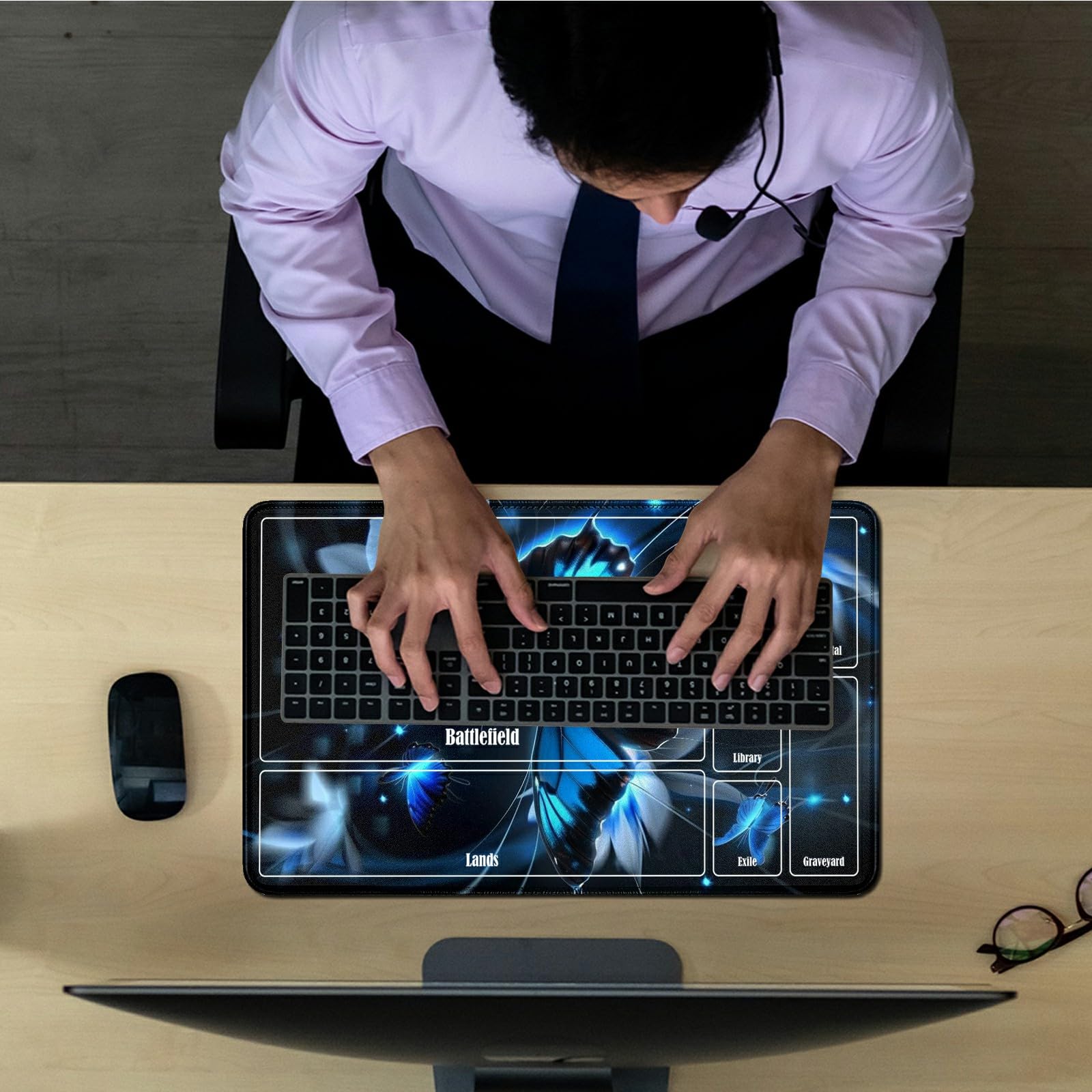 Rwutytiul Blue Butterfly Card Playmat 24 X 14 Inch With Tube Bag, Card Gameplay Desk Mat With Zones For Commander Deck Mtg Rpg C