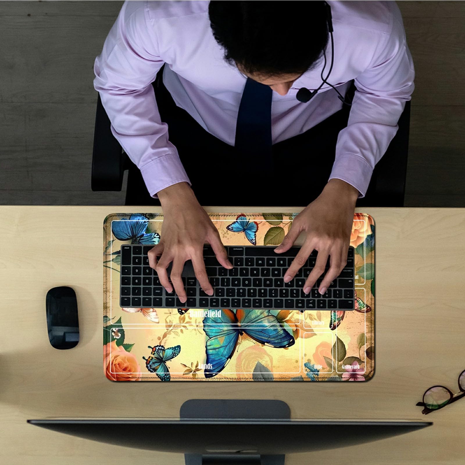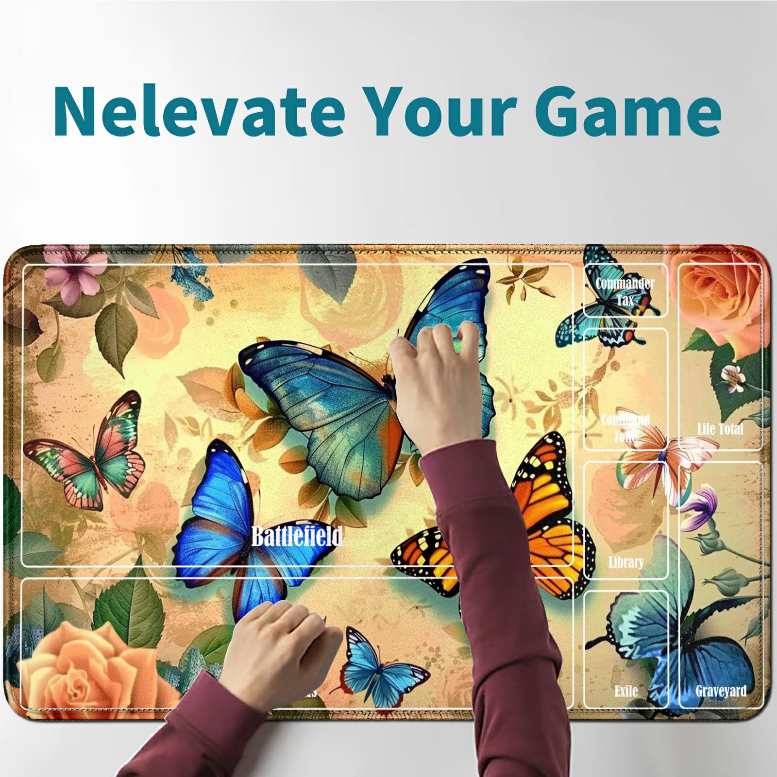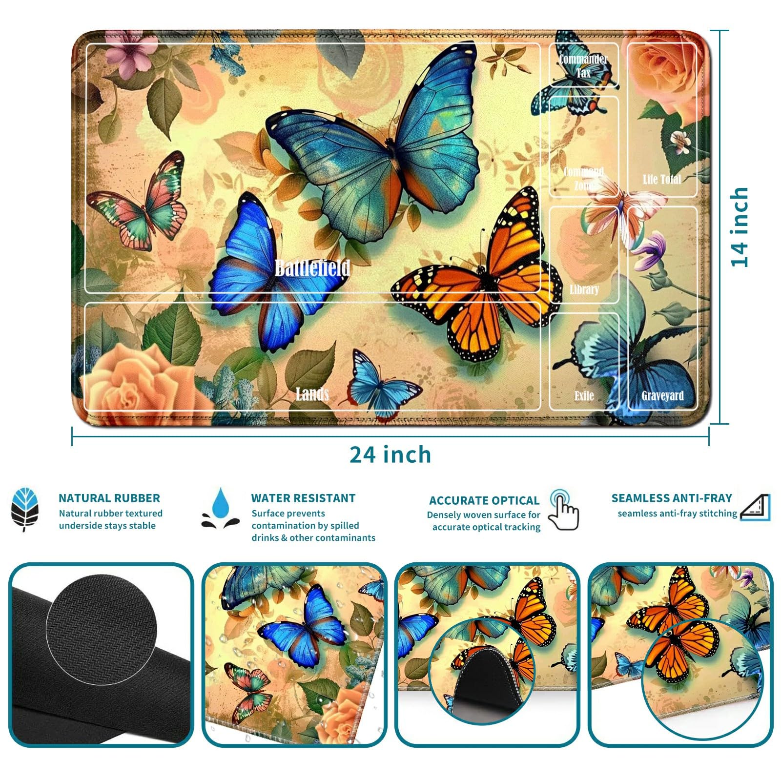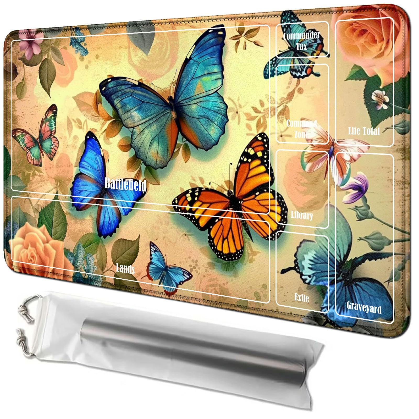 Rwutytiul Butterfly Card Playmat 24 X 14 Inch With Tube Bag, Card Gameplay Playmat With Zones Commander Deck Board Mtg Rpg Ccg T