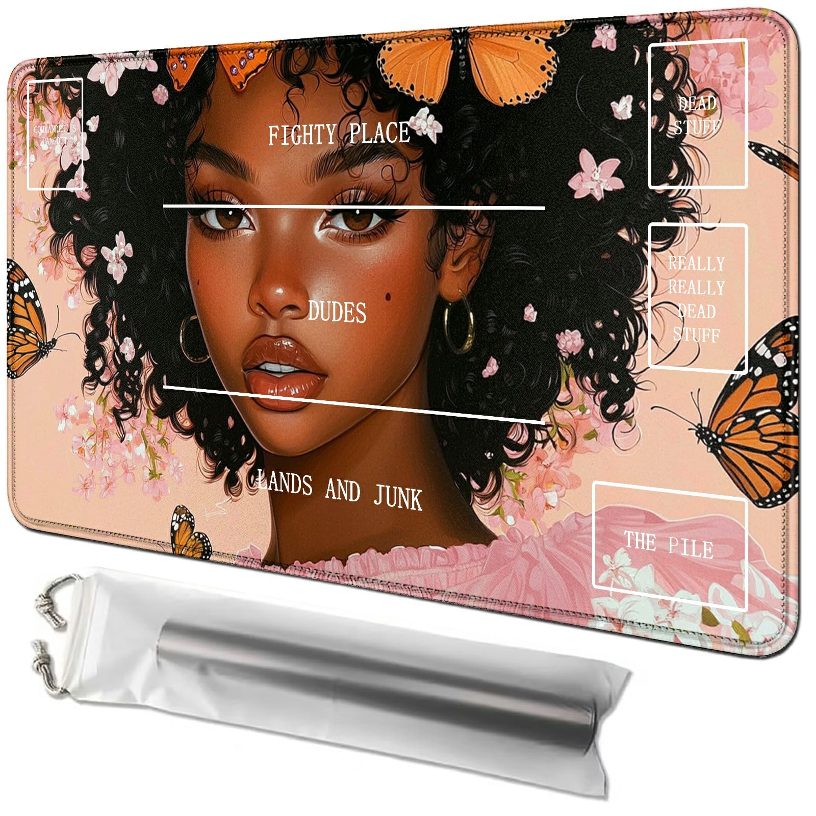 RWUTYTIUL Butterfly Girl Card Playmat 24 X 14 Inch with Tube Bag, Card Gameplay Playmat with Zones Commander Deck Board MTG RPG