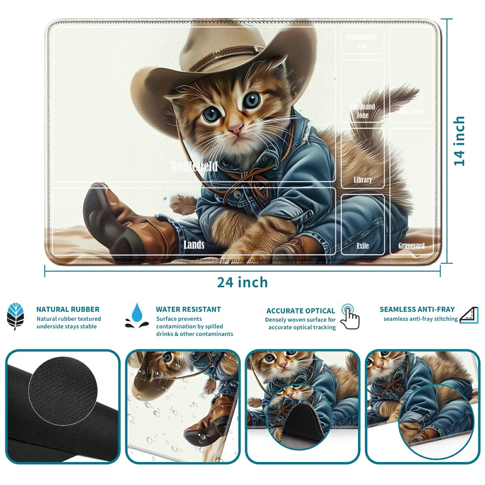 View compareRwutytiul Cat Card Playmat 24 X 14 Inch With Playmat Tube Bag, Card Gameplay Playmat With Zones Commander Deck Board Mtg Rpg Ccg