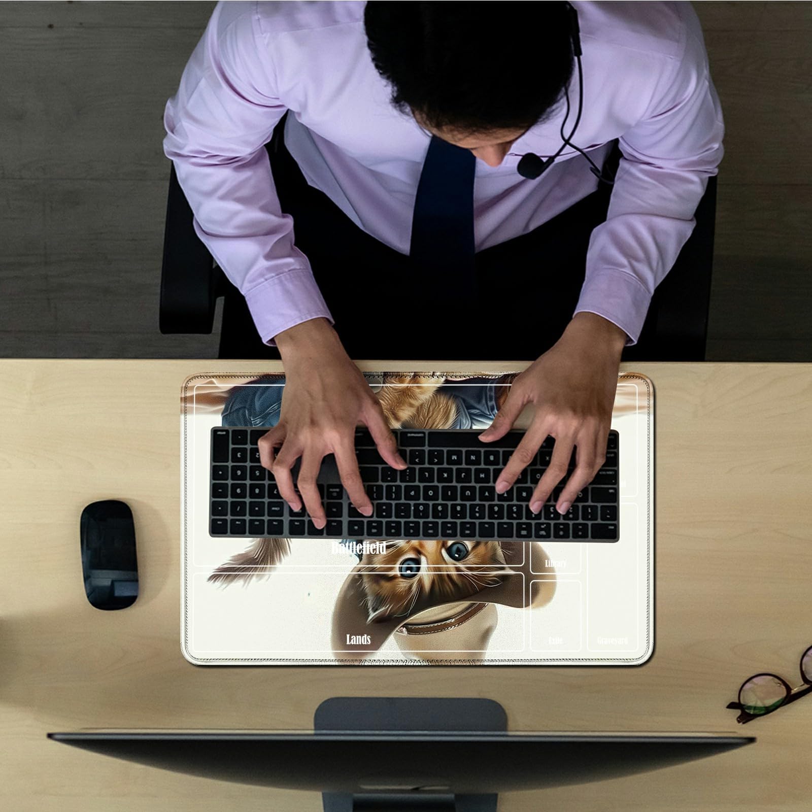 Rwutytiul Cat Card Playmat 24 X 14 Inch With Playmat Tube Bag, Card Gameplay Playmat With Zones Commander Deck Board Mtg Rpg Ccg