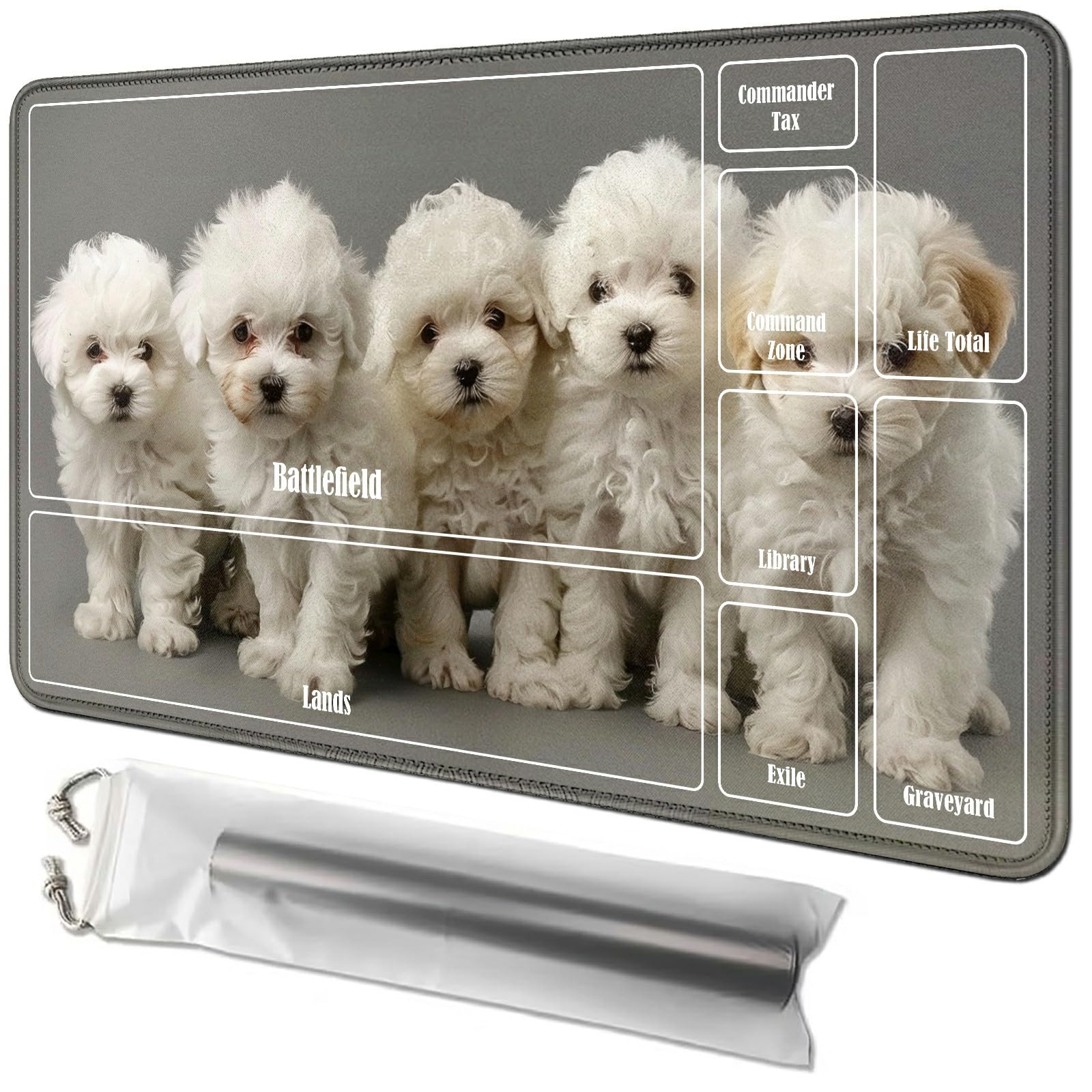 Rwutytiul Dog Card Playmat 24 X 14 Inch With Tube Bag, Card Gameplay Mat With Zones Commander Deck Board Mtg Rpg Ccg Tcg Card Ga